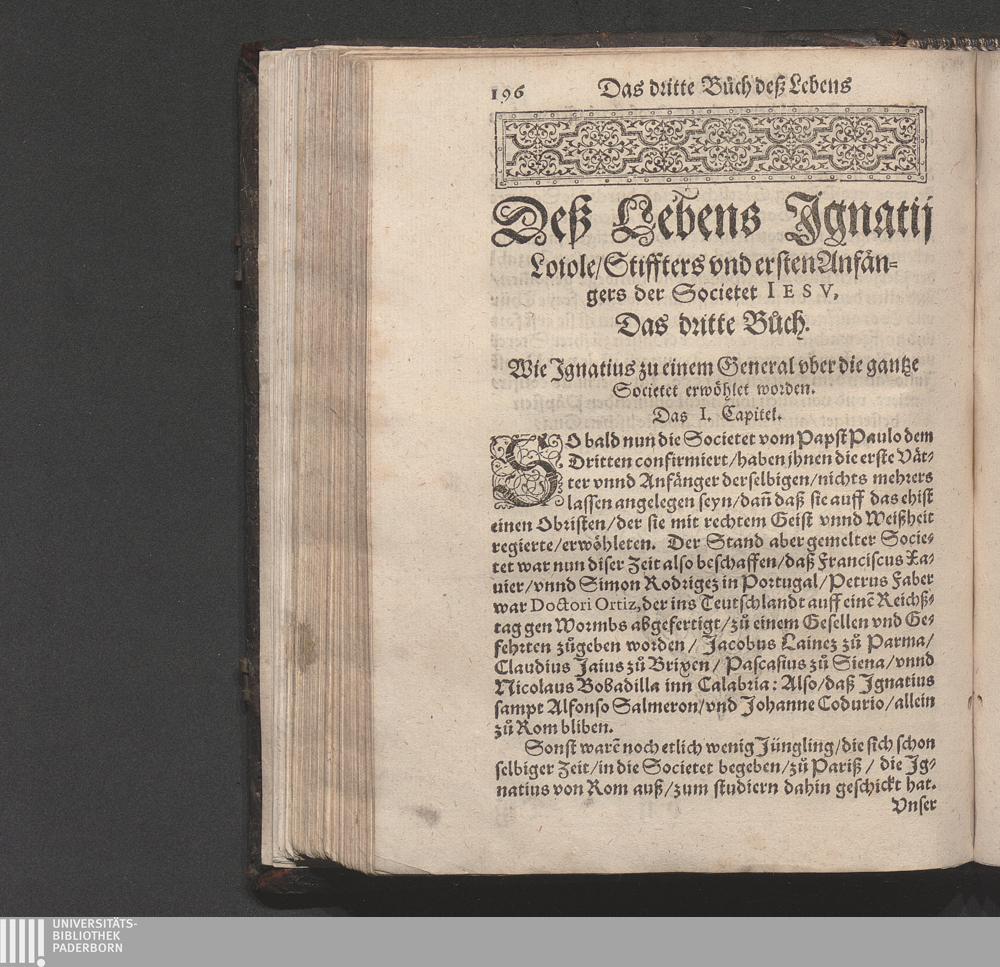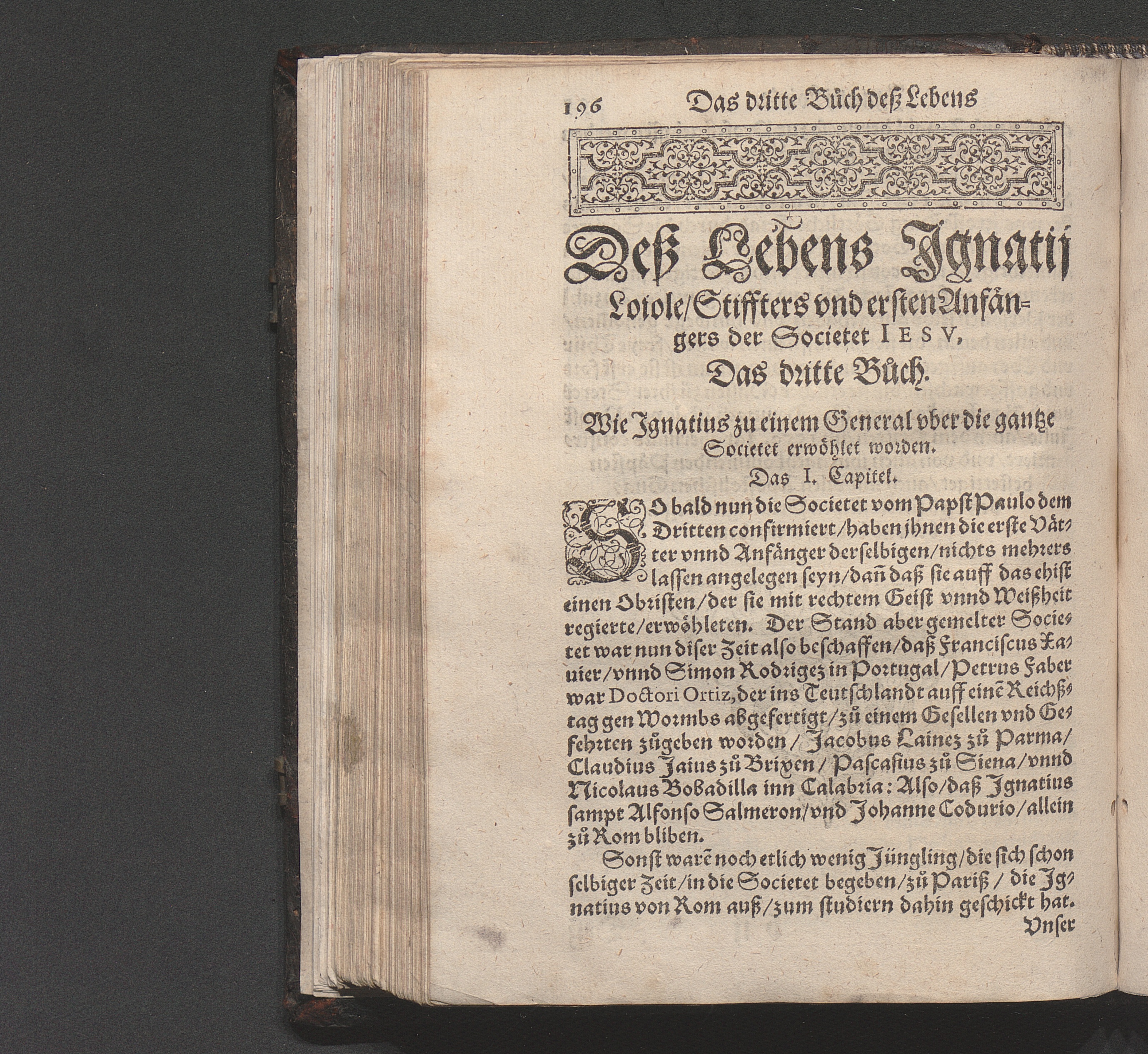 Historia Von dem Leben und Wandel Jgnatij Loiole/ Anfengers vnd Stiffters der Religion/ die Societet Iesv genannt / Erstlich von Petro Ribadenera in Spanischer Sprach beschriben/ Nachmals durch Johannem Jolitum inn die Welsche/ vnd ferner in vnser hochteutsche Sprach versetzet