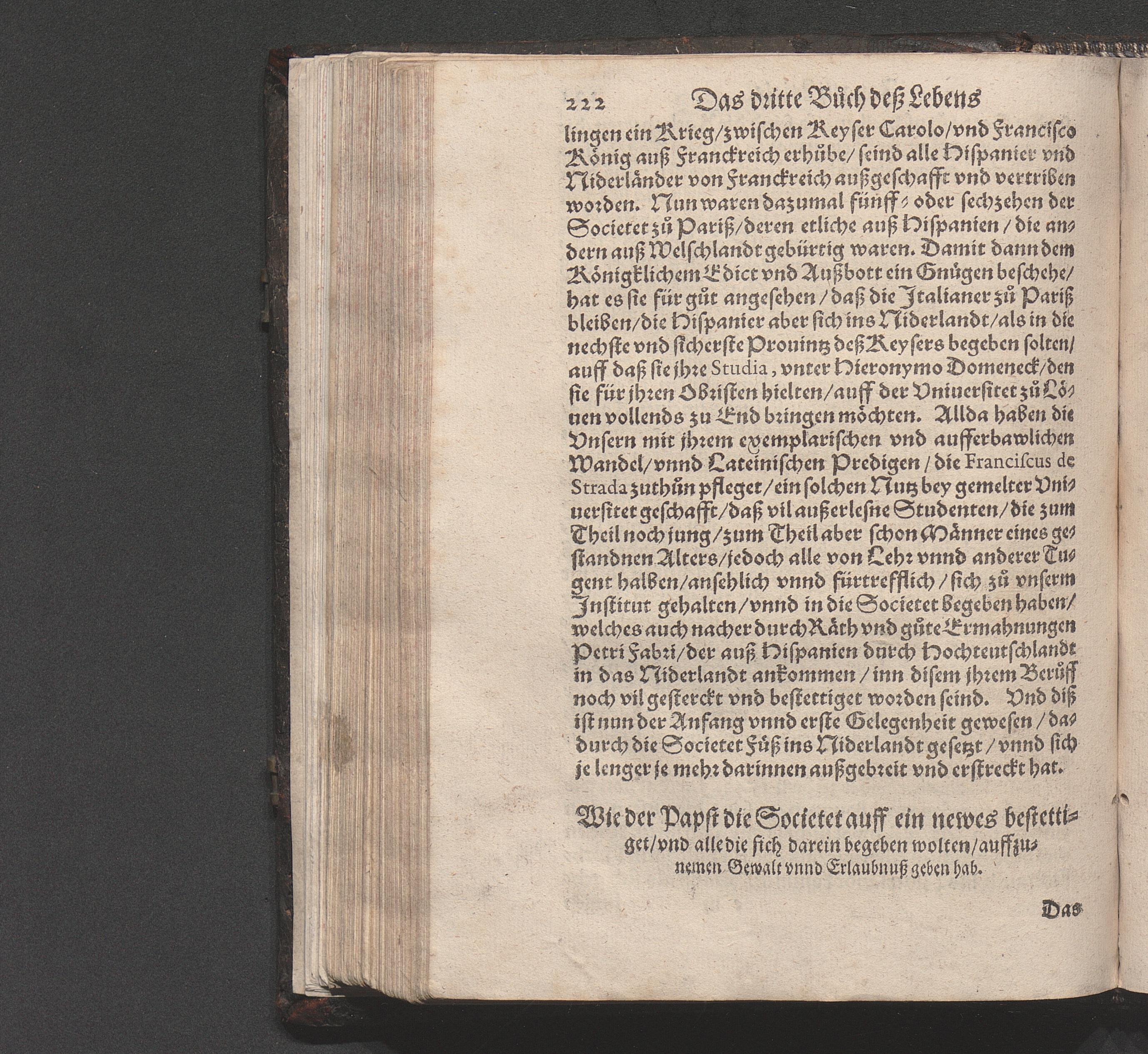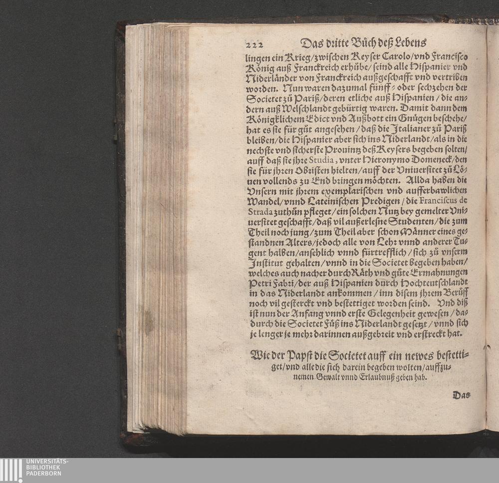 Historia Von dem Leben und Wandel Jgnatij Loiole/ Anfengers vnd Stiffters der Religion/ die Societet Iesv genannt / Erstlich von Petro Ribadenera in Spanischer Sprach beschriben/ Nachmals durch Johannem Jolitum inn die Welsche/ vnd ferner in vnser hochteutsche Sprach versetzet