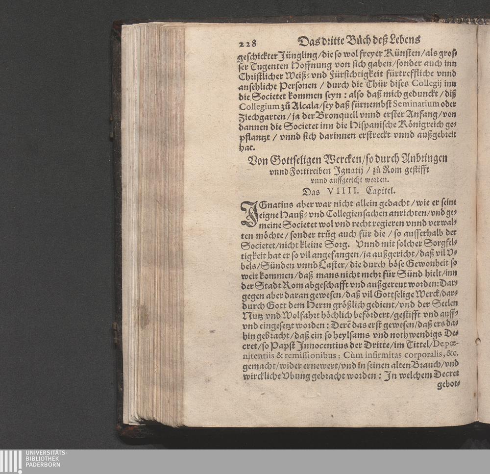 Historia Von dem Leben und Wandel Jgnatij Loiole/ Anfengers vnd Stiffters der Religion/ die Societet Iesv genannt / Erstlich von Petro Ribadenera in Spanischer Sprach beschriben/ Nachmals durch Johannem Jolitum inn die Welsche/ vnd ferner in vnser hochteutsche Sprach versetzet