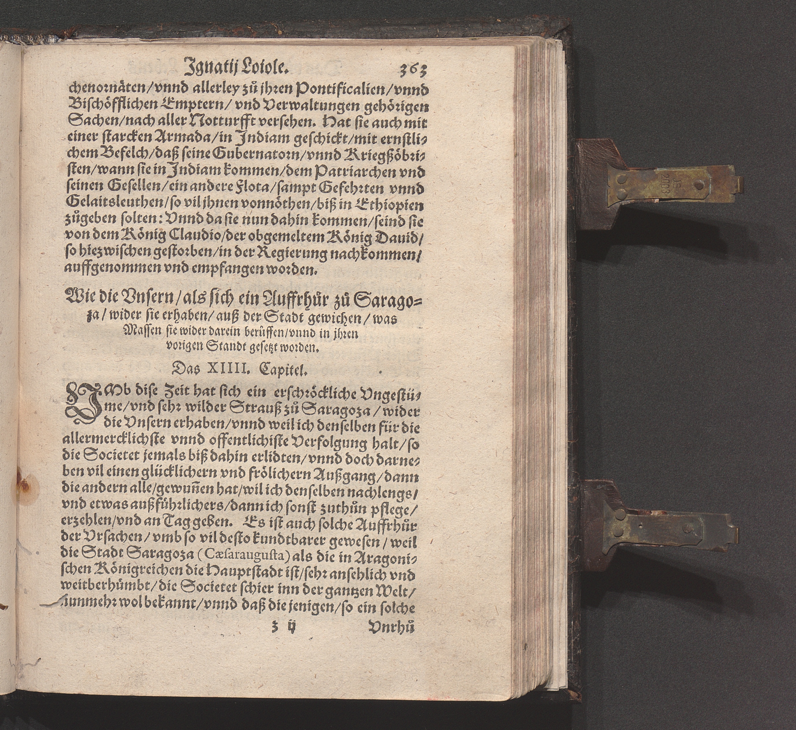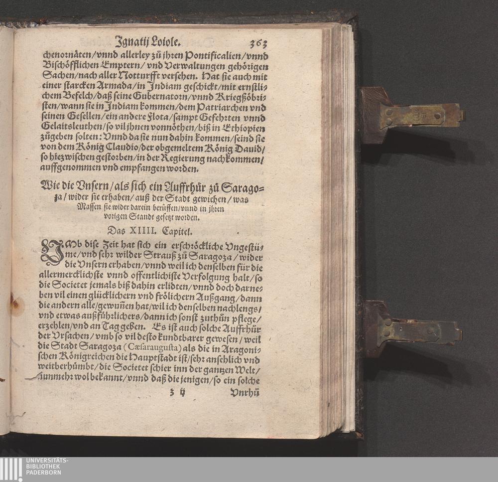 Historia Von dem Leben und Wandel Jgnatij Loiole/ Anfengers vnd Stiffters der Religion/ die Societet Iesv genannt / Erstlich von Petro Ribadenera in Spanischer Sprach beschriben/ Nachmals durch Johannem Jolitum inn die Welsche/ vnd ferner in vnser hochteutsche Sprach versetzet