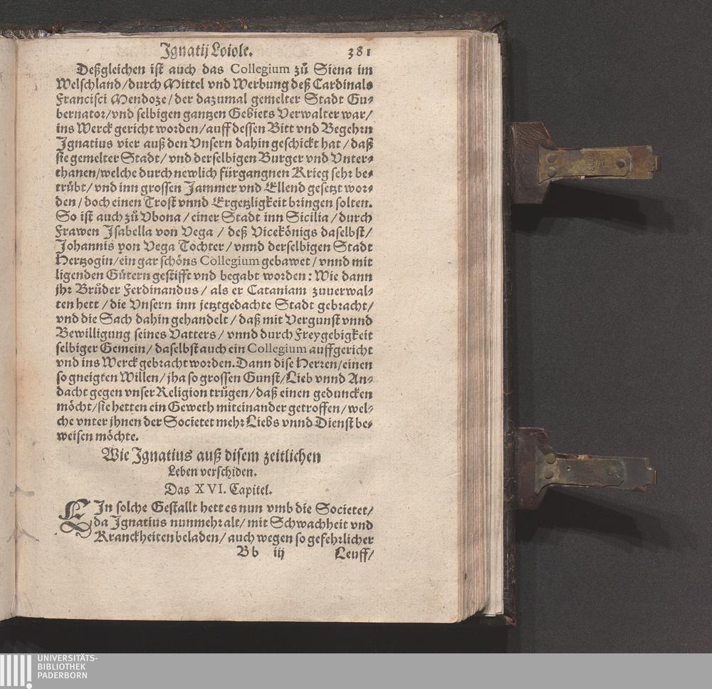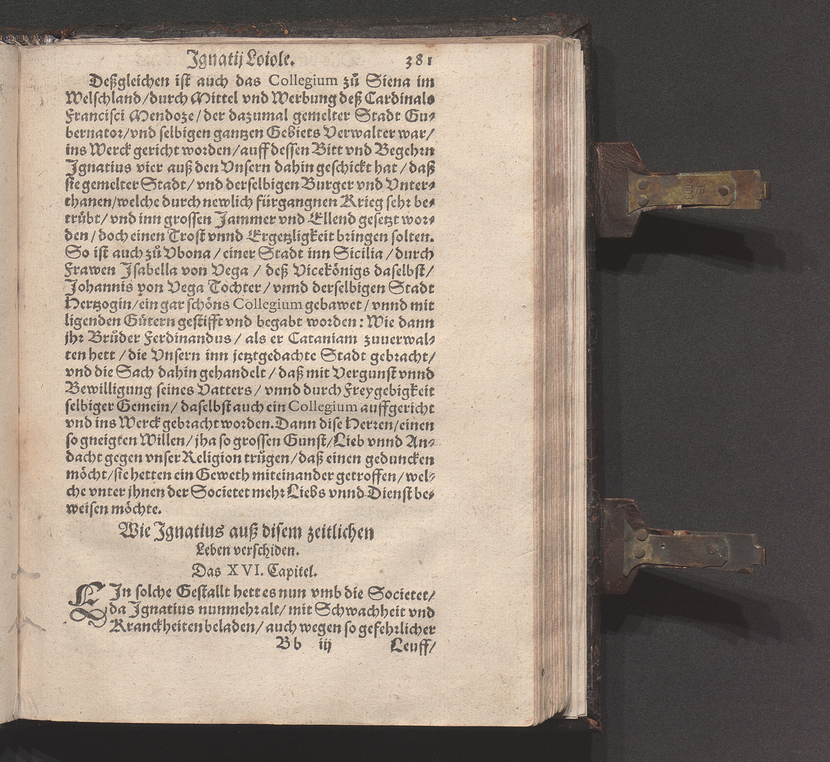 Historia Von dem Leben und Wandel Jgnatij Loiole/ Anfengers vnd Stiffters der Religion/ die Societet Iesv genannt / Erstlich von Petro Ribadenera in Spanischer Sprach beschriben/ Nachmals durch Johannem Jolitum inn die Welsche/ vnd ferner in vnser hochteutsche Sprach versetzet