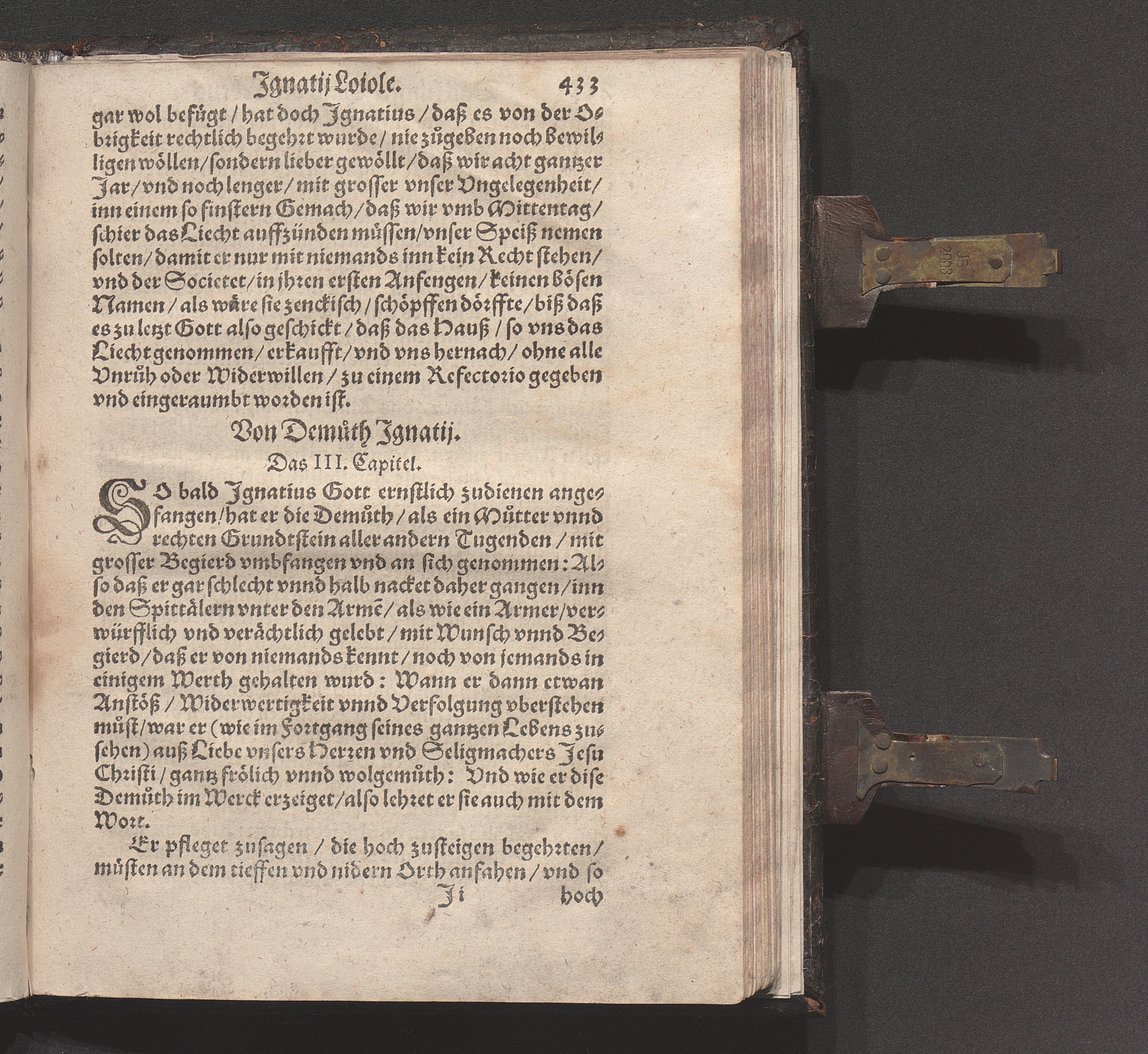 Historia Von dem Leben und Wandel Jgnatij Loiole/ Anfengers vnd Stiffters der Religion/ die Societet Iesv genannt / Erstlich von Petro Ribadenera in Spanischer Sprach beschriben/ Nachmals durch Johannem Jolitum inn die Welsche/ vnd ferner in vnser hochteutsche Sprach versetzet