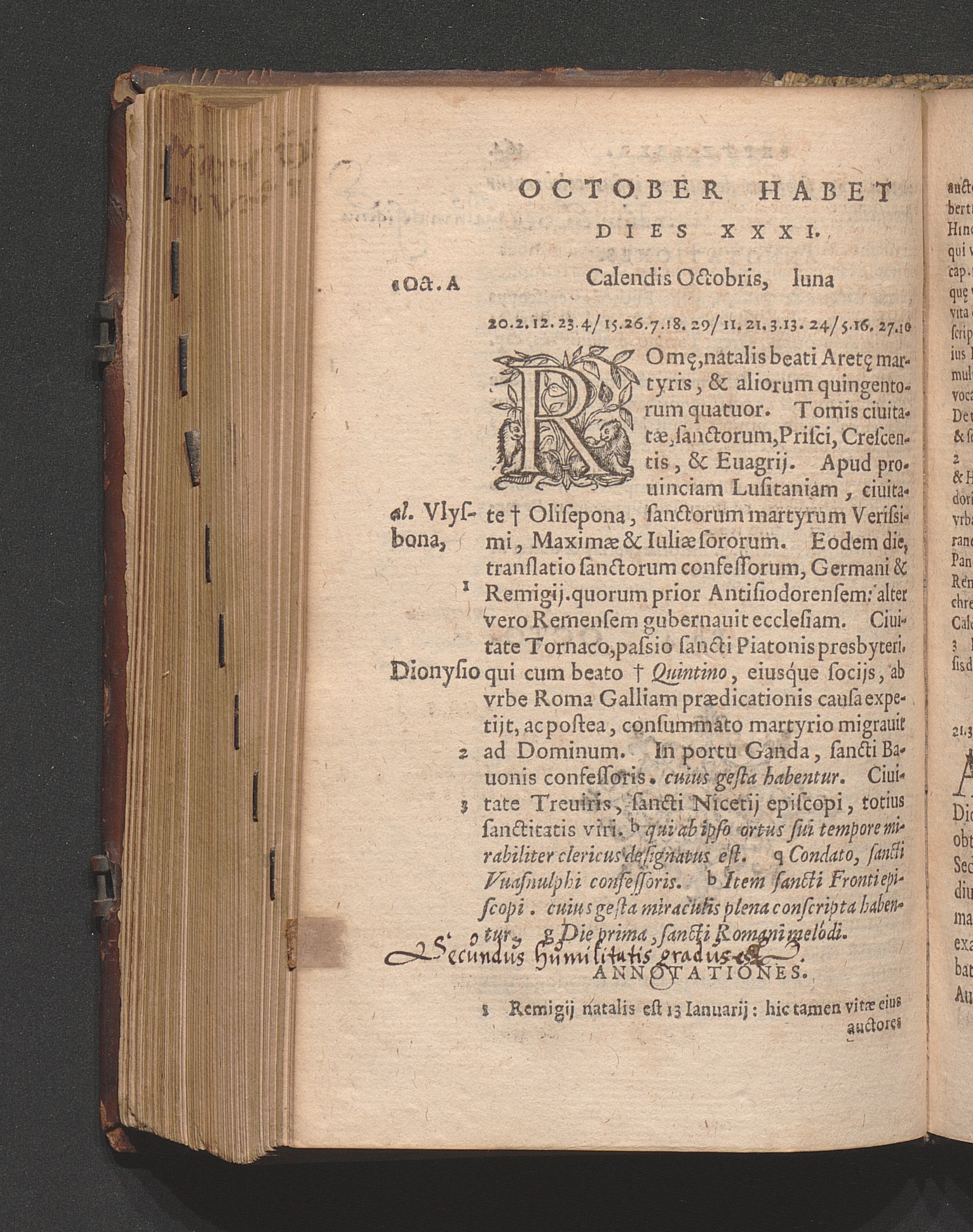 Vsvardi Martyrologivm : Qvo Romana Ecclesia, Ac Permvltae aliæ vtuntur: iussu Caroli Magni conscriptum. Cum additionibus ex Martyrologijs Romanæ Ecclesiæ, & aliarum, potißimum Belgij. Et Annotatione Auctorum, qui de Sanctorum vita, confessione, vel martyrio, fuse, aut aliquando obiter, nonnulla scripserunt / Operâ Ioannis Molani Louaniensis, Louanij sacræ Theologiæ Regij Professoris