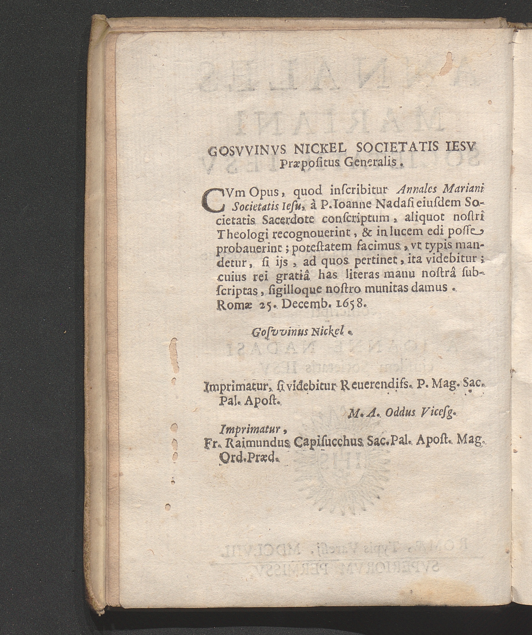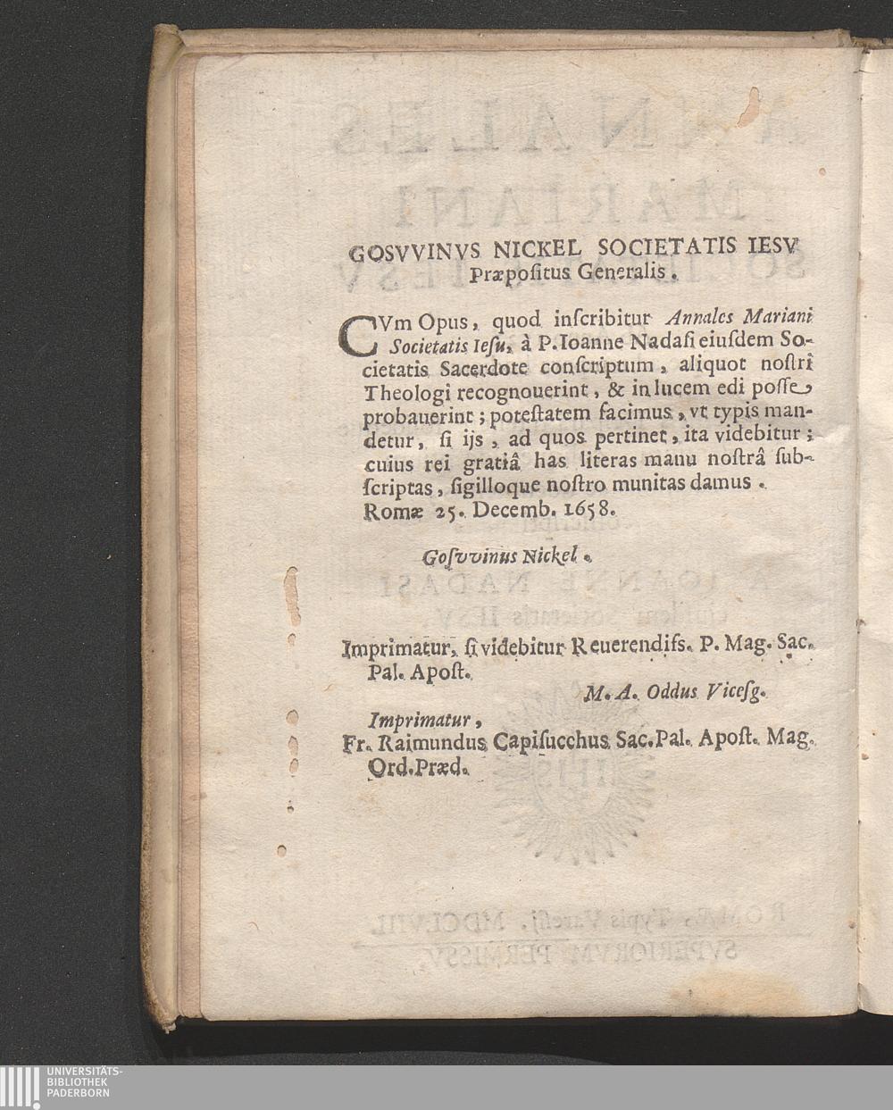 Annales Mariani Societatis Iesv : Ab Anno 1521 vsque ad tempora hodierna. E domesticis Deiparam tenerè solideque colentium, colique docentium exemplis ac documentis, conscripti / A Ioanne Nadasi eiusdem Societatis Iesv