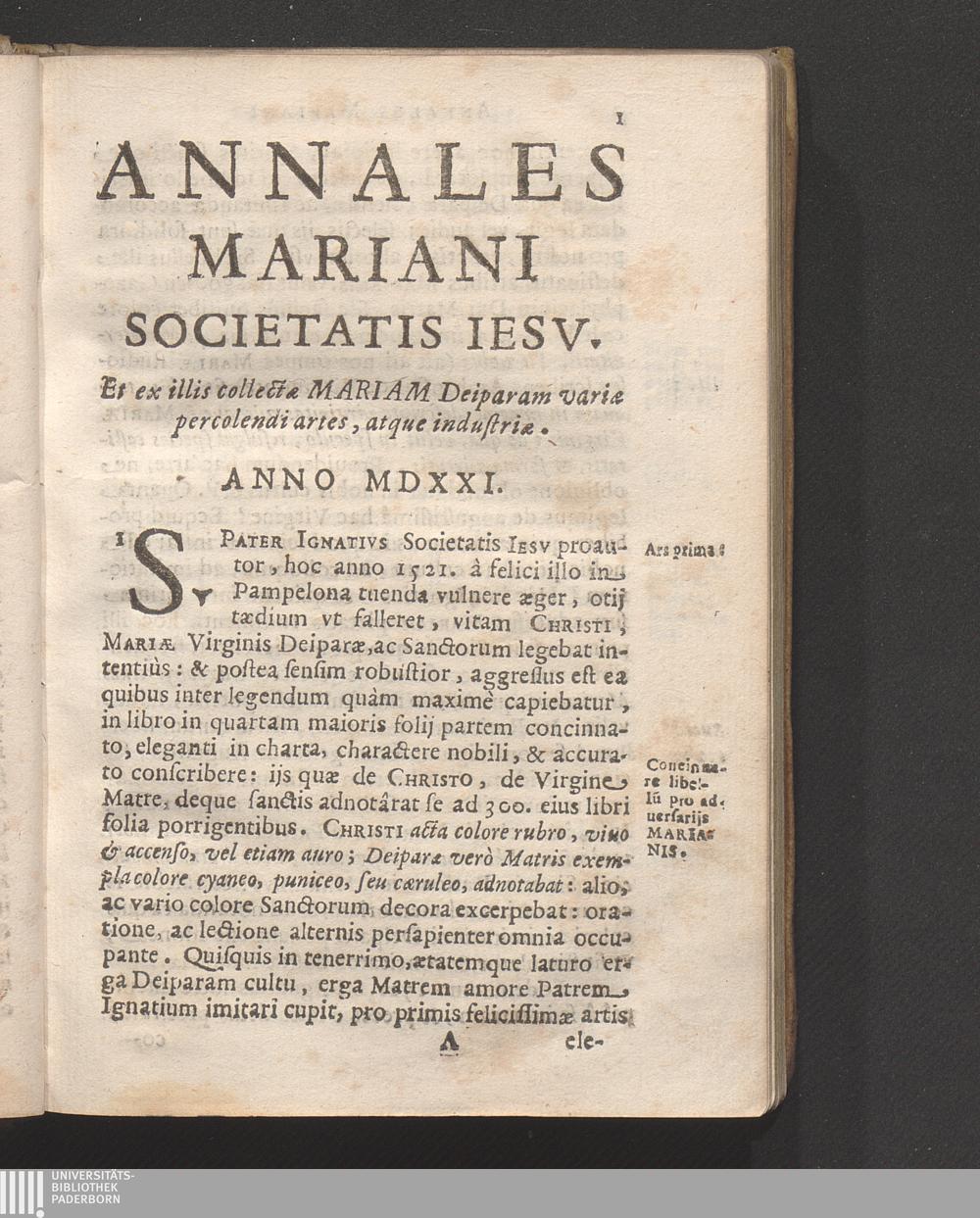 Annales Mariani Societatis Iesv : Ab Anno 1521 vsque ad tempora hodierna. E domesticis Deiparam tenerè solideque colentium, colique docentium exemplis ac documentis, conscripti / A Ioanne Nadasi eiusdem Societatis Iesv