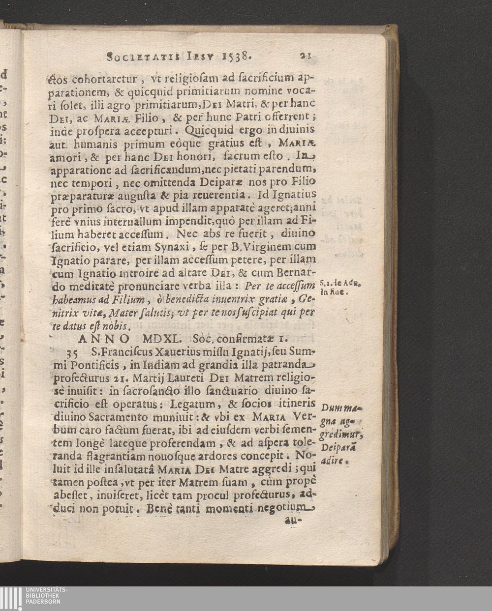 Annales Mariani Societatis Iesv : Ab Anno 1521 vsque ad tempora hodierna. E domesticis Deiparam tenerè solideque colentium, colique docentium exemplis ac documentis, conscripti / A Ioanne Nadasi eiusdem Societatis Iesv