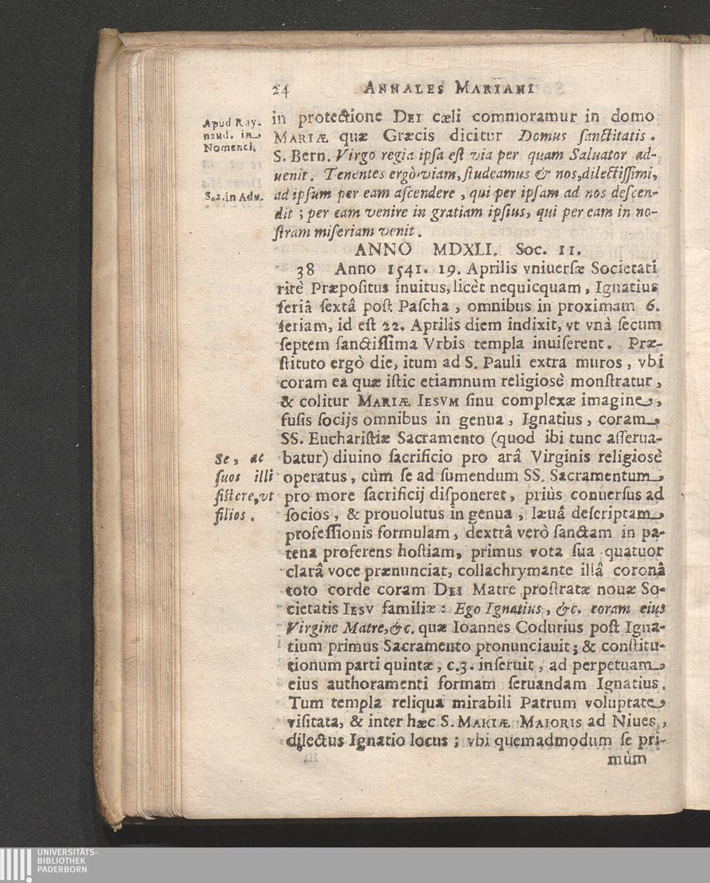 Annales Mariani Societatis Iesv : Ab Anno 1521 vsque ad tempora hodierna. E domesticis Deiparam tenerè solideque colentium, colique docentium exemplis ac documentis, conscripti / A Ioanne Nadasi eiusdem Societatis Iesv