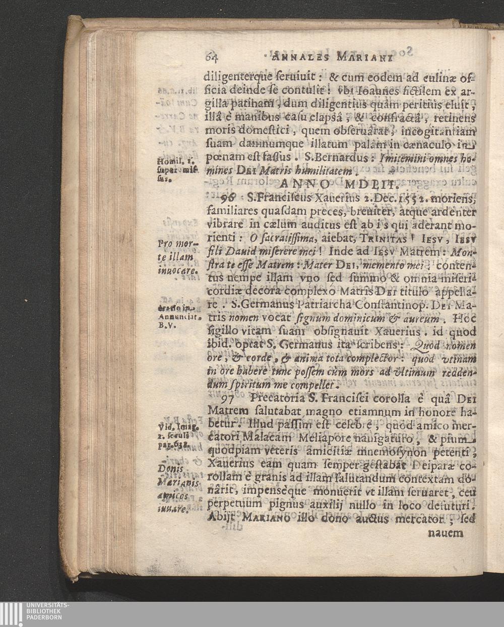 Annales Mariani Societatis Iesv : Ab Anno 1521 vsque ad tempora hodierna. E domesticis Deiparam tenerè solideque colentium, colique docentium exemplis ac documentis, conscripti / A Ioanne Nadasi eiusdem Societatis Iesv