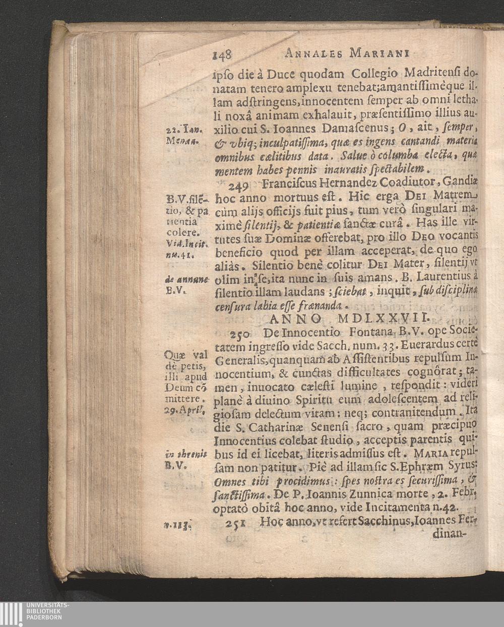 Annales Mariani Societatis Iesv : Ab Anno 1521 vsque ad tempora hodierna. E domesticis Deiparam tenerè solideque colentium, colique docentium exemplis ac documentis, conscripti / A Ioanne Nadasi eiusdem Societatis Iesv