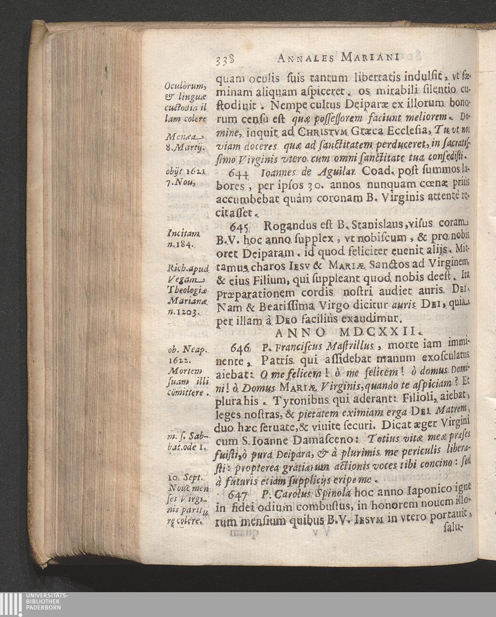 Annales Mariani Societatis Iesv : Ab Anno 1521 vsque ad tempora hodierna. E domesticis Deiparam tenerè solideque colentium, colique docentium exemplis ac documentis, conscripti / A Ioanne Nadasi eiusdem Societatis Iesv