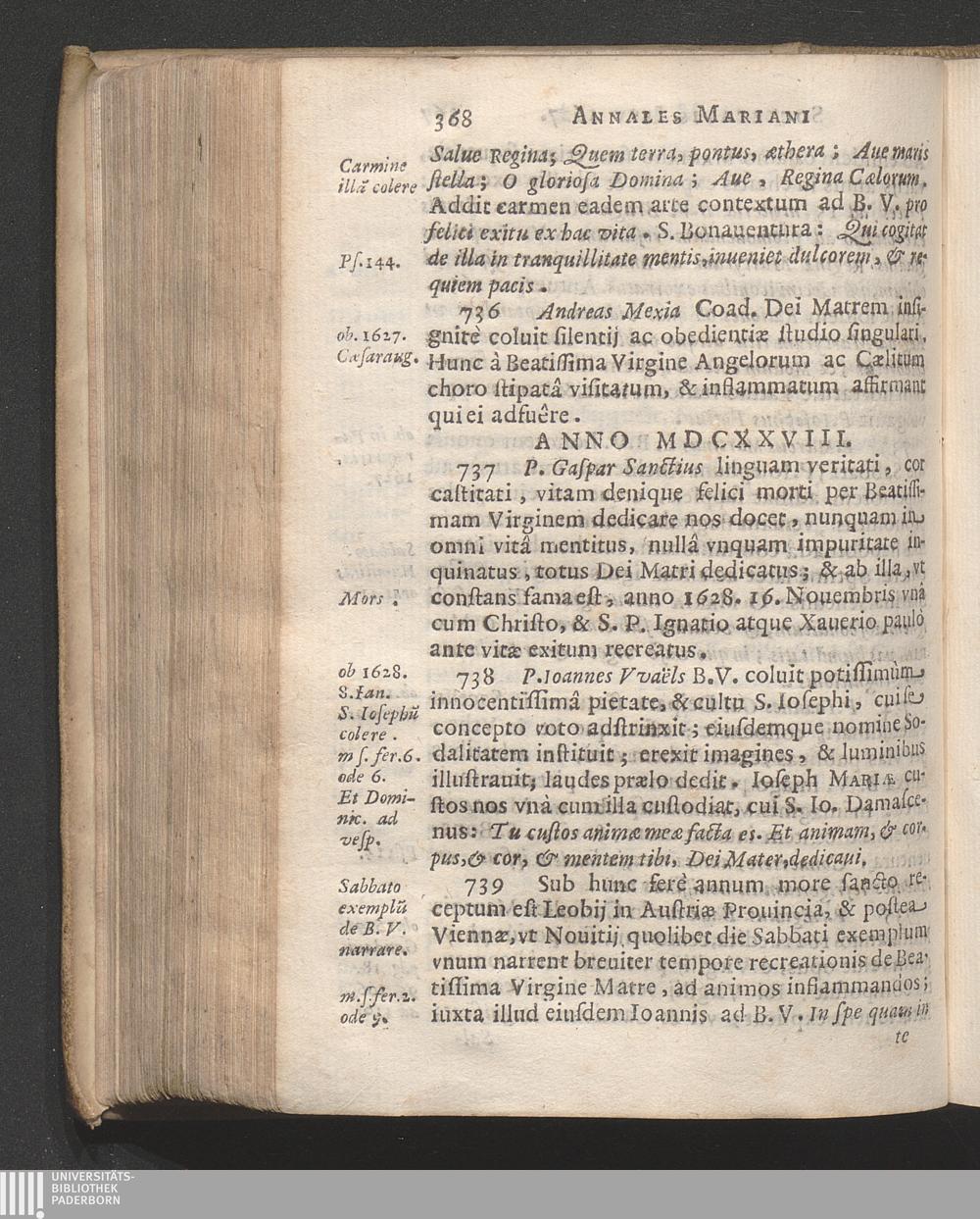 Annales Mariani Societatis Iesv : Ab Anno 1521 vsque ad tempora hodierna. E domesticis Deiparam tenerè solideque colentium, colique docentium exemplis ac documentis, conscripti / A Ioanne Nadasi eiusdem Societatis Iesv