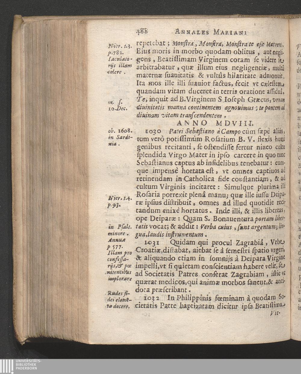 Annales Mariani Societatis Iesv : Ab Anno 1521 vsque ad tempora hodierna. E domesticis Deiparam tenerè solideque colentium, colique docentium exemplis ac documentis, conscripti / A Ioanne Nadasi eiusdem Societatis Iesv