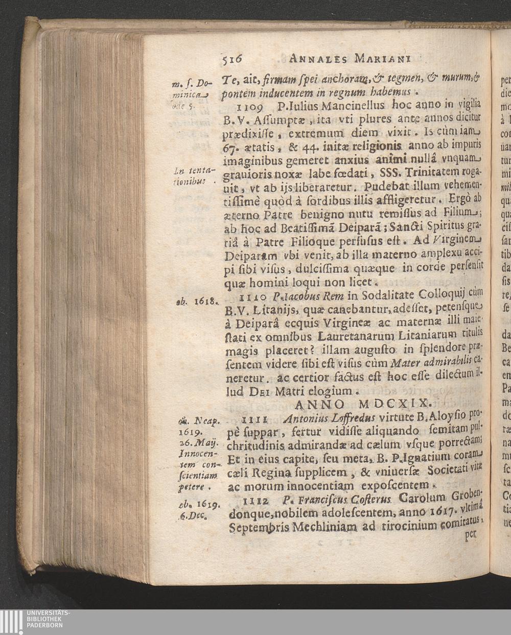 Annales Mariani Societatis Iesv : Ab Anno 1521 vsque ad tempora hodierna. E domesticis Deiparam tenerè solideque colentium, colique docentium exemplis ac documentis, conscripti / A Ioanne Nadasi eiusdem Societatis Iesv