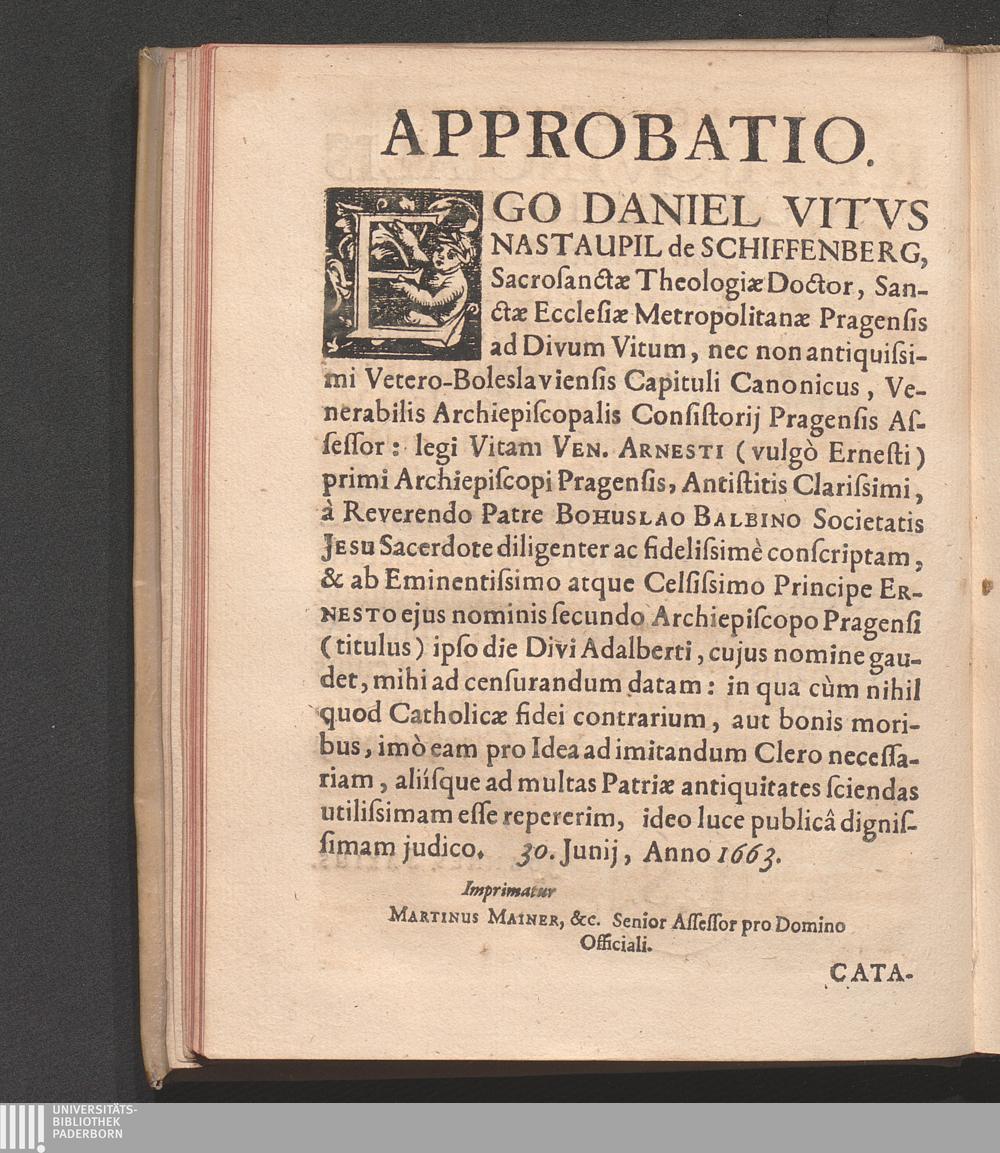 Vita Venerabilis Arnesti, (vulgò Ernesti) Primi Archiepiscopi Pragensis : Nobilitate Sanguinis, Sapientiâ ac Litteris, Morum innocentiâ & Sanctimoniâ, rebus maximis gestis, ac denique Virtutibus omnibus Antistitis Clarissimi; Ex ijs Quæ de eo Vitæ Scriptor coævus collegit, aliísq[ue] vetustissimis, ac fide dignis monimentis ; Additæ sunt accuratissimæ Notæ, quibus eorum temporum, totiúsq[ue] Regni Bohemiæ historia multùm illustratur / Authore Bohuslao Aloysio Balbino, Soc. Jesv Sacerdote