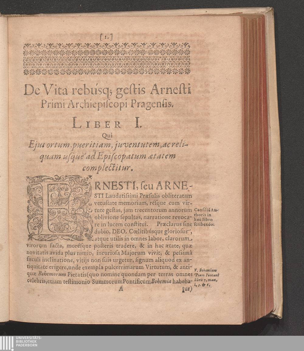 Vita Venerabilis Arnesti, (vulgò Ernesti) Primi Archiepiscopi Pragensis : Nobilitate Sanguinis, Sapientiâ ac Litteris, Morum innocentiâ & Sanctimoniâ, rebus maximis gestis, ac denique Virtutibus omnibus Antistitis Clarissimi; Ex ijs Quæ de eo Vitæ Scriptor coævus collegit, aliísq[ue] vetustissimis, ac fide dignis monimentis ; Additæ sunt accuratissimæ Notæ, quibus eorum temporum, totiúsq[ue] Regni Bohemiæ historia multùm illustratur / Authore Bohuslao Aloysio Balbino, Soc. Jesv Sacerdote