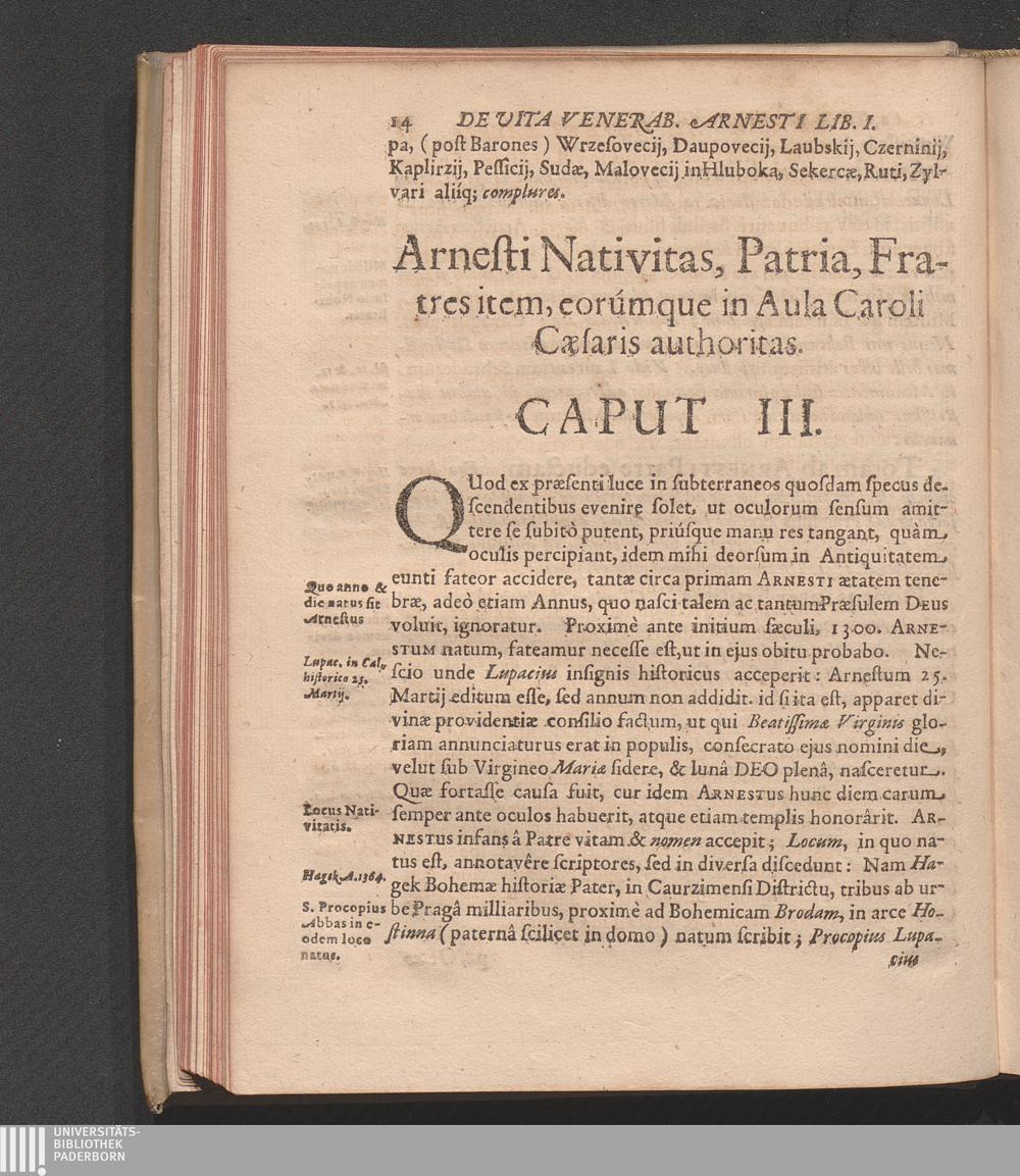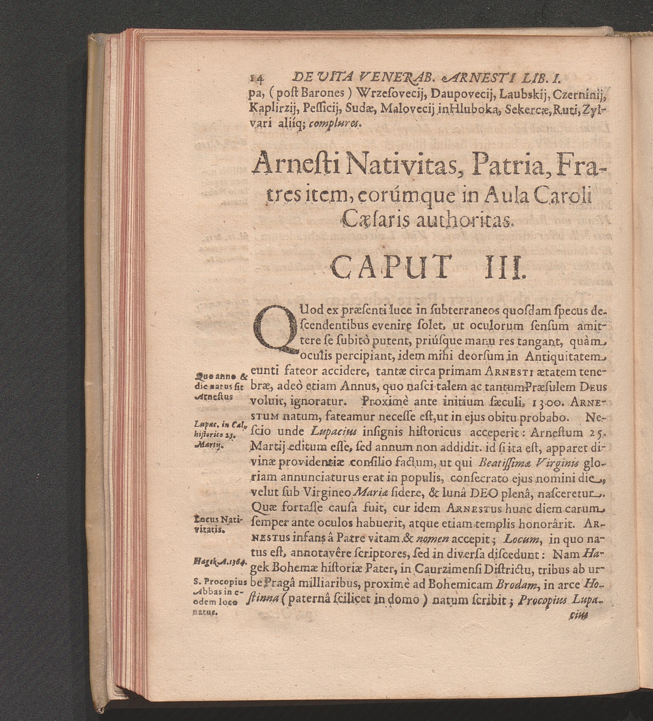 Vita Venerabilis Arnesti, (vulgò Ernesti) Primi Archiepiscopi Pragensis : Nobilitate Sanguinis, Sapientiâ ac Litteris, Morum innocentiâ & Sanctimoniâ, rebus maximis gestis, ac denique Virtutibus omnibus Antistitis Clarissimi; Ex ijs Quæ de eo Vitæ Scriptor coævus collegit, aliísq[ue] vetustissimis, ac fide dignis monimentis ; Additæ sunt accuratissimæ Notæ, quibus eorum temporum, totiúsq[ue] Regni Bohemiæ historia multùm illustratur / Authore Bohuslao Aloysio Balbino, Soc. Jesv Sacerdote