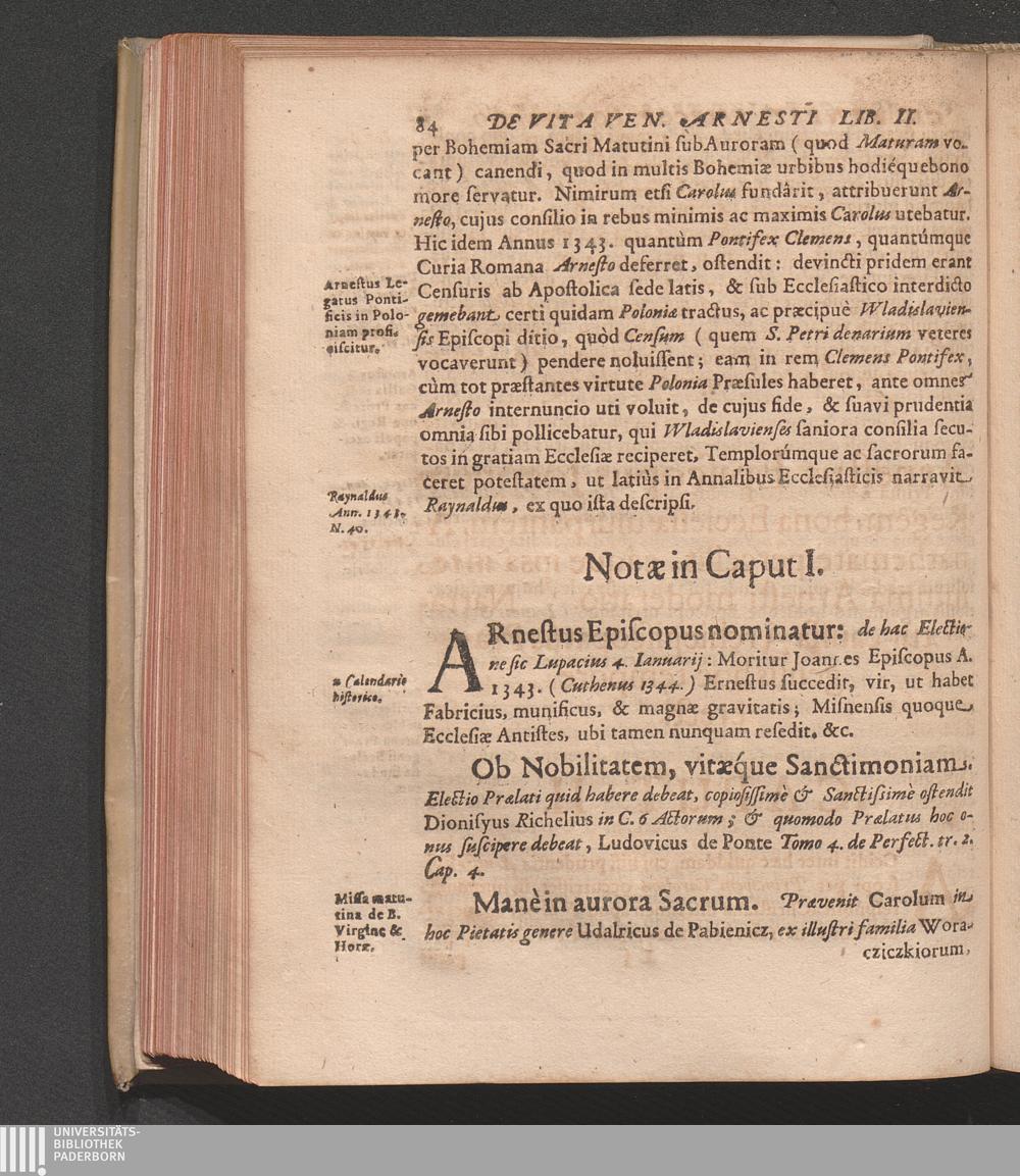 Vita Venerabilis Arnesti, (vulgò Ernesti) Primi Archiepiscopi Pragensis : Nobilitate Sanguinis, Sapientiâ ac Litteris, Morum innocentiâ & Sanctimoniâ, rebus maximis gestis, ac denique Virtutibus omnibus Antistitis Clarissimi; Ex ijs Quæ de eo Vitæ Scriptor coævus collegit, aliísq[ue] vetustissimis, ac fide dignis monimentis ; Additæ sunt accuratissimæ Notæ, quibus eorum temporum, totiúsq[ue] Regni Bohemiæ historia multùm illustratur / Authore Bohuslao Aloysio Balbino, Soc. Jesv Sacerdote