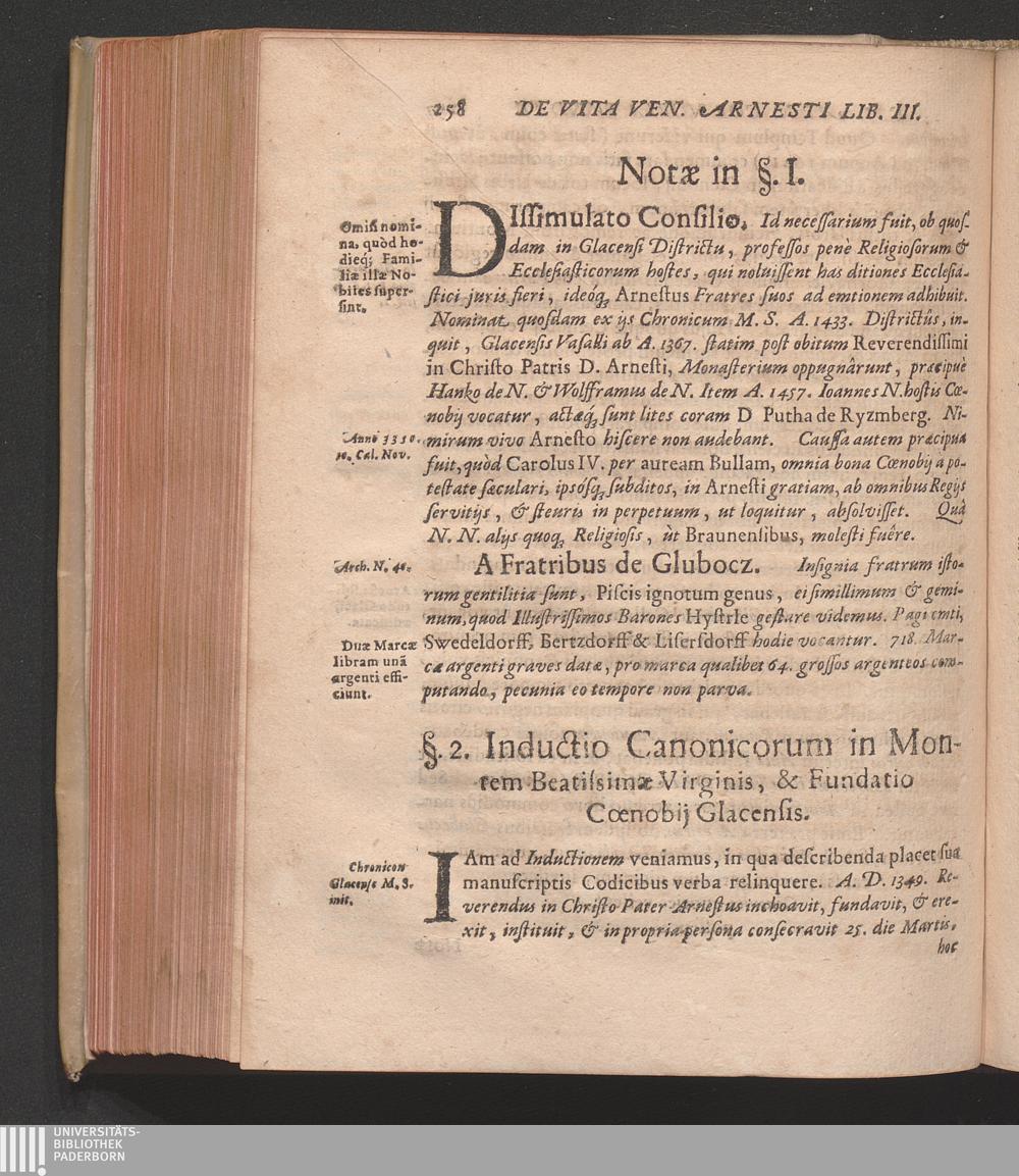 Vita Venerabilis Arnesti, (vulgò Ernesti) Primi Archiepiscopi Pragensis : Nobilitate Sanguinis, Sapientiâ ac Litteris, Morum innocentiâ & Sanctimoniâ, rebus maximis gestis, ac denique Virtutibus omnibus Antistitis Clarissimi; Ex ijs Quæ de eo Vitæ Scriptor coævus collegit, aliísq[ue] vetustissimis, ac fide dignis monimentis ; Additæ sunt accuratissimæ Notæ, quibus eorum temporum, totiúsq[ue] Regni Bohemiæ historia multùm illustratur / Authore Bohuslao Aloysio Balbino, Soc. Jesv Sacerdote