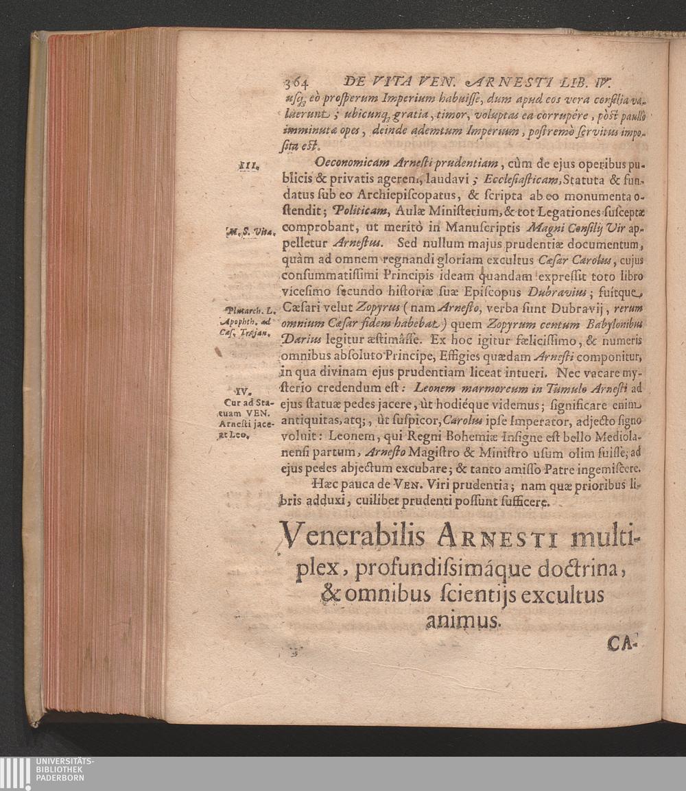 Vita Venerabilis Arnesti, (vulgò Ernesti) Primi Archiepiscopi Pragensis : Nobilitate Sanguinis, Sapientiâ ac Litteris, Morum innocentiâ & Sanctimoniâ, rebus maximis gestis, ac denique Virtutibus omnibus Antistitis Clarissimi; Ex ijs Quæ de eo Vitæ Scriptor coævus collegit, aliísq[ue] vetustissimis, ac fide dignis monimentis ; Additæ sunt accuratissimæ Notæ, quibus eorum temporum, totiúsq[ue] Regni Bohemiæ historia multùm illustratur / Authore Bohuslao Aloysio Balbino, Soc. Jesv Sacerdote