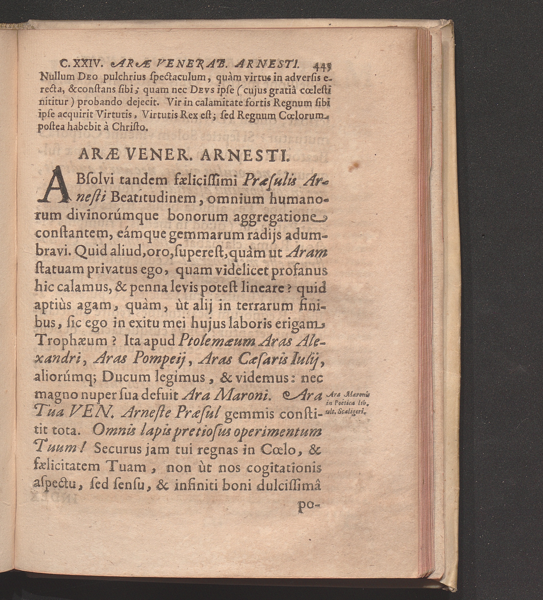Vita Venerabilis Arnesti, (vulgò Ernesti) Primi Archiepiscopi Pragensis : Nobilitate Sanguinis, Sapientiâ ac Litteris, Morum innocentiâ & Sanctimoniâ, rebus maximis gestis, ac denique Virtutibus omnibus Antistitis Clarissimi; Ex ijs Quæ de eo Vitæ Scriptor coævus collegit, aliísq[ue] vetustissimis, ac fide dignis monimentis ; Additæ sunt accuratissimæ Notæ, quibus eorum temporum, totiúsq[ue] Regni Bohemiæ historia multùm illustratur / Authore Bohuslao Aloysio Balbino, Soc. Jesv Sacerdote