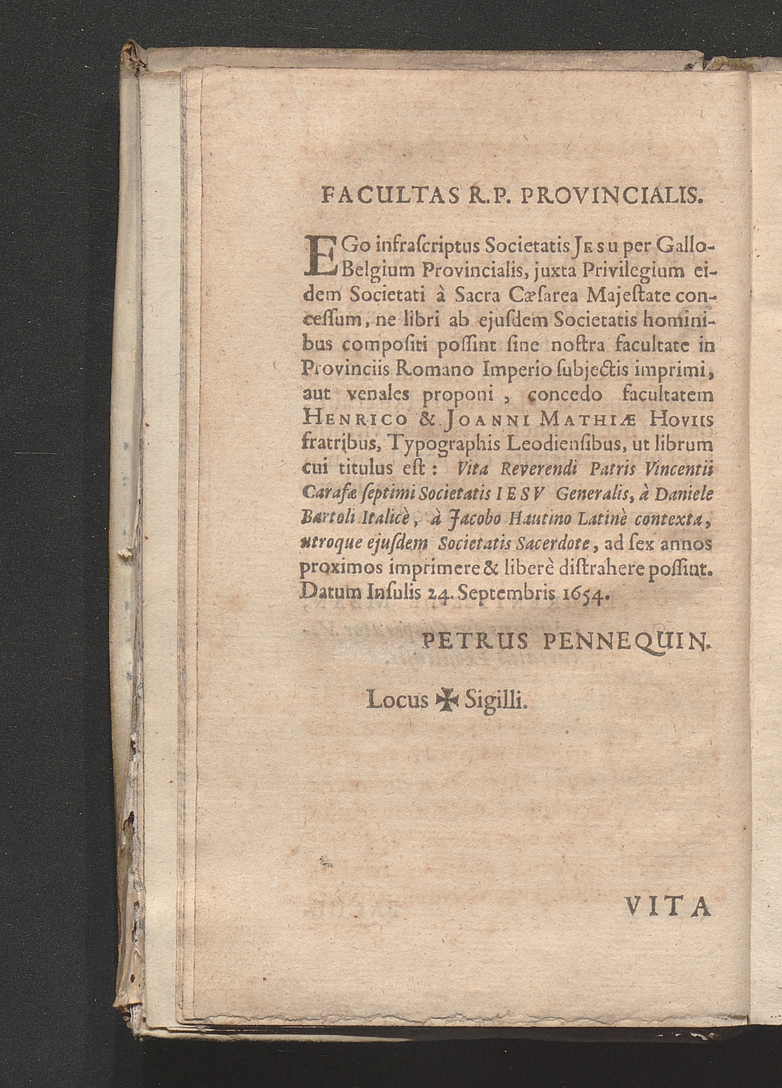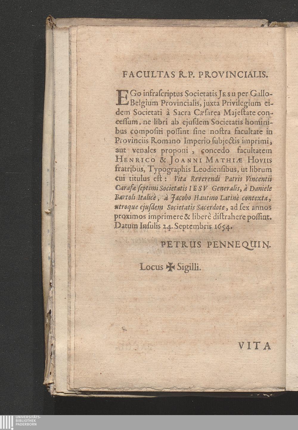 Vita Reverendi Patris Vincentii Carafæ, Septimi Societatis Jesu Generalis / A Daniele Bartholi Italicè, à Jacobo Hautino Latinè contexta, utroque ejusdem Societatis Sacerdote