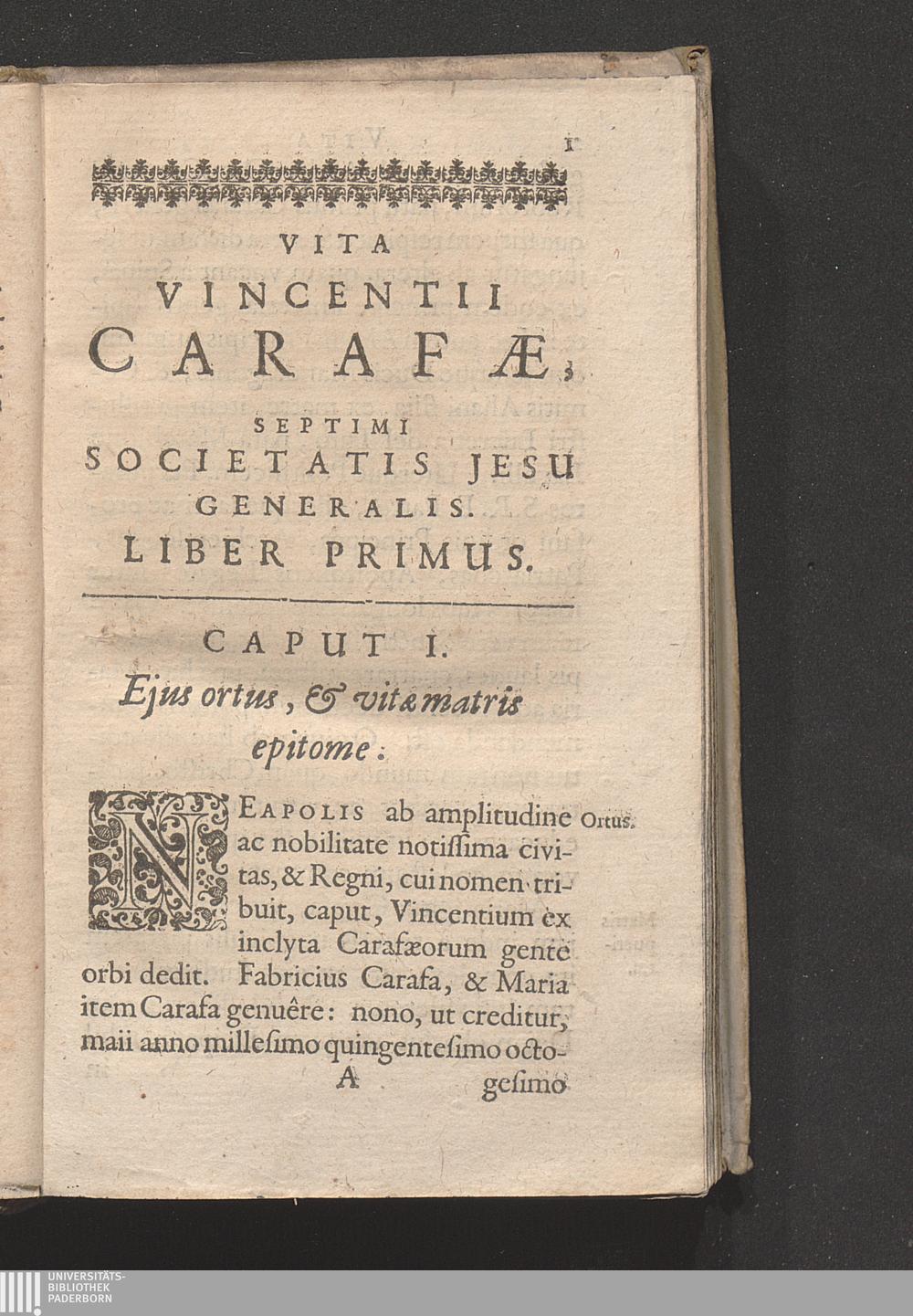 Vita Reverendi Patris Vincentii Carafæ, Septimi Societatis Jesu Generalis