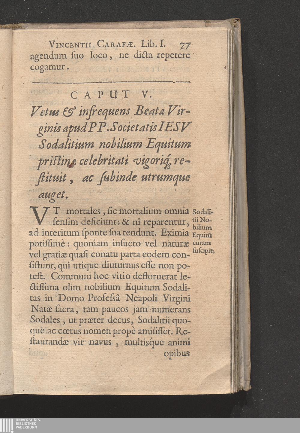 Cap. V. Vetus, & infrequens B. Virginis apud PP. Societ. Iesv Sodalitium nobilium[...]