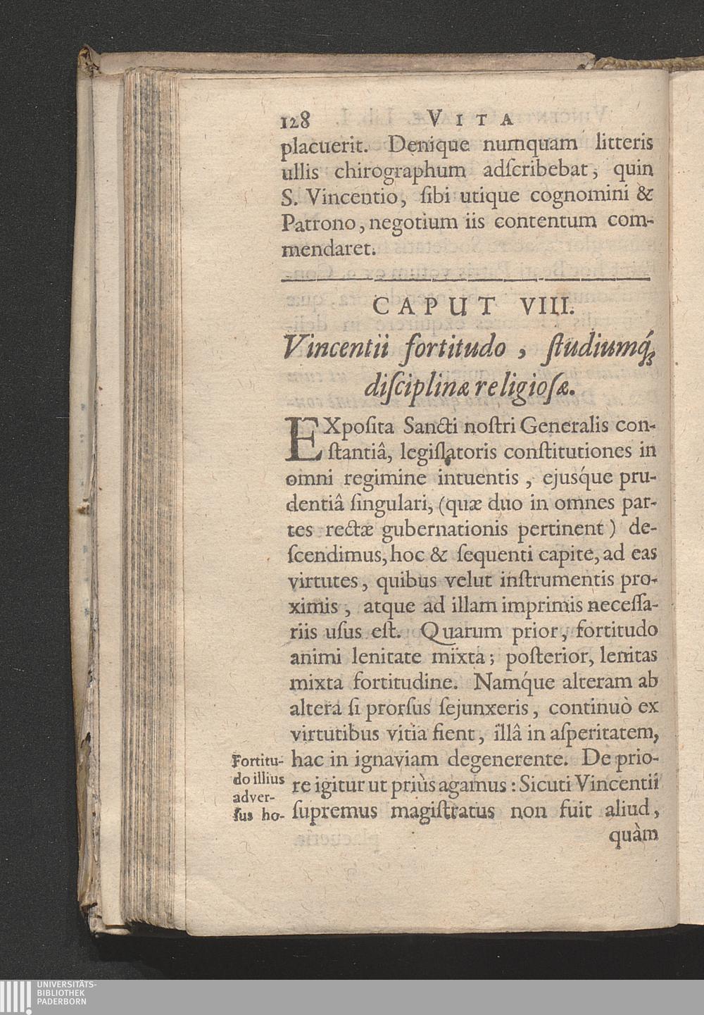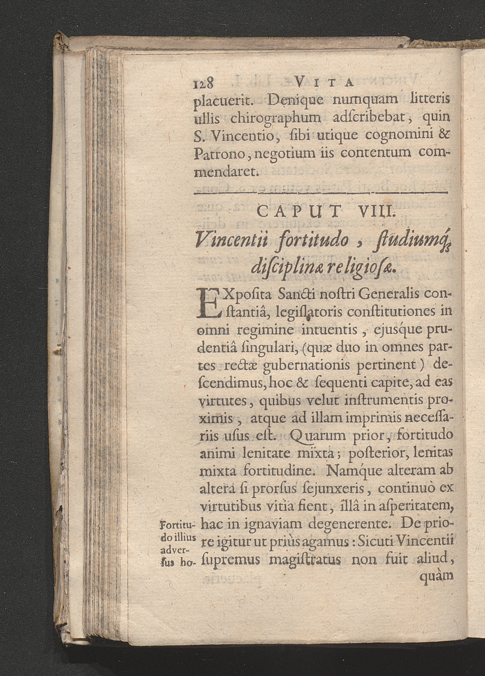 Cap. VIII. Vincentii fortitudo studiumq[ue] disciplinæ religiosæ.