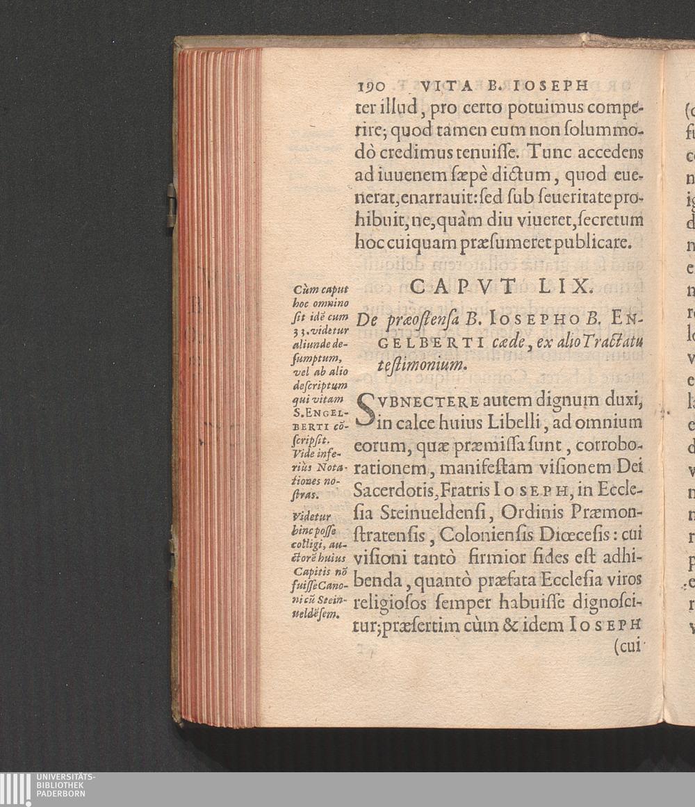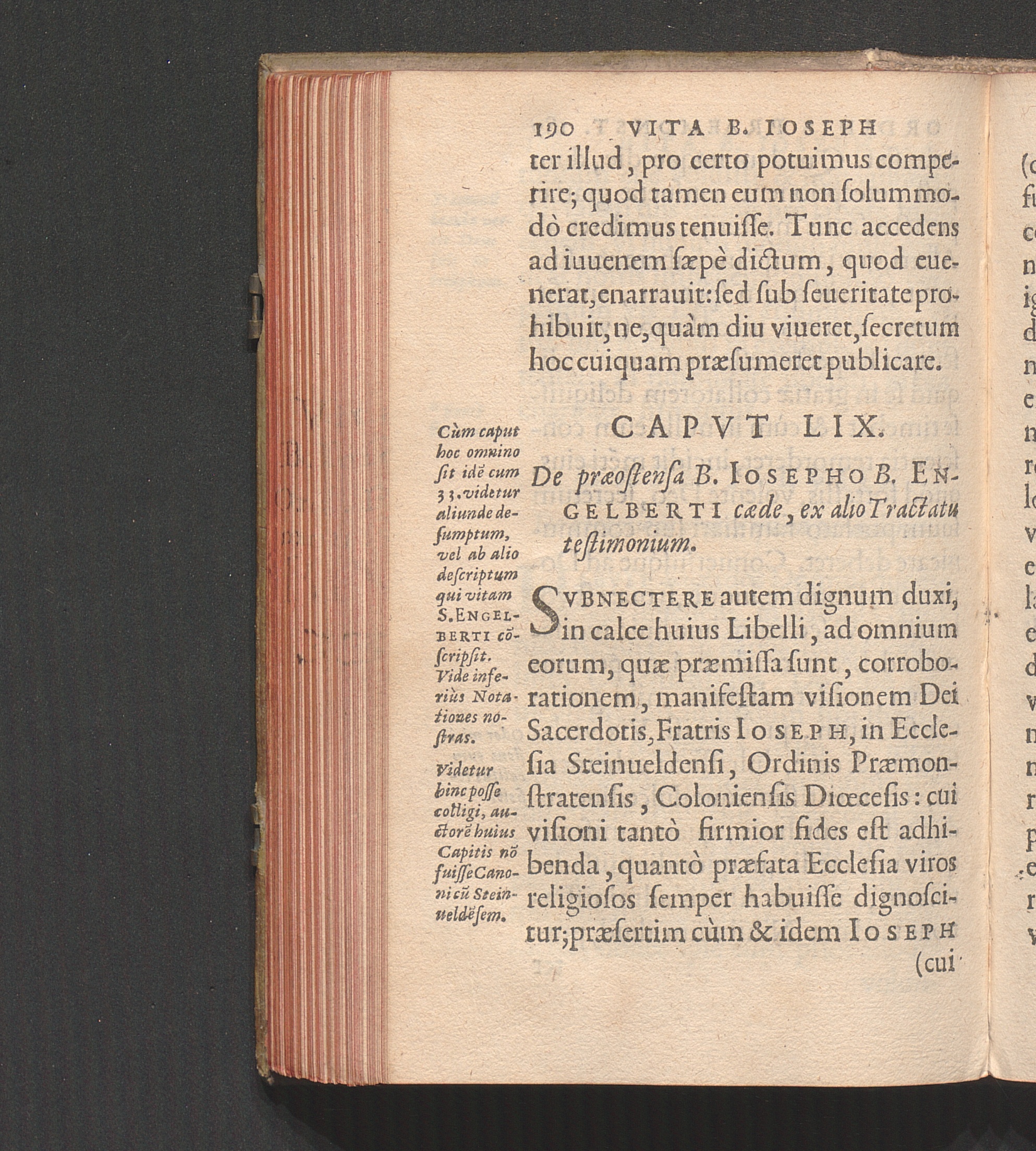 Lilivm Inter Spinas : Vita B. Ioseph Presbyteri Et Canonici Steinveldensis Ordinis Præmonstratensis / Ex vetusto Steinueldensi Archetypo fideliter descripta, ac Notationibus illustrata per R. P. F. Io. Chrysostomvm Vander Sterre in S. Michaële Priorem eiusdem Ordinis Præmonst.