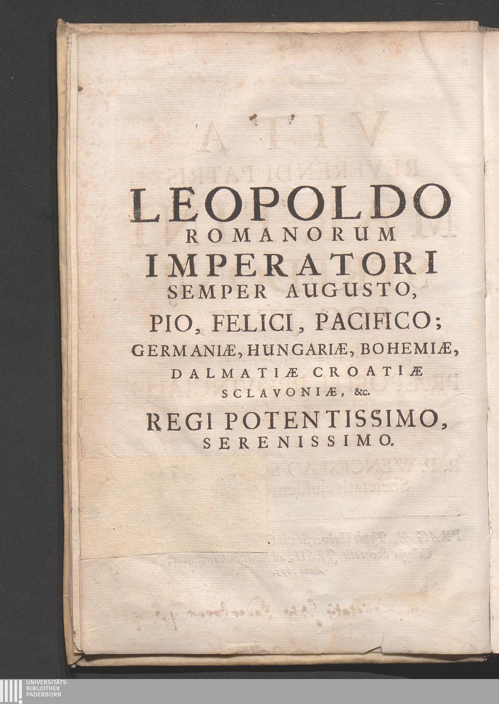 Leopoldo Romanorum Imperatori Semper Augusto, Pio, Felici, Pacifico; Germaniæ, Hungariæ,[...]