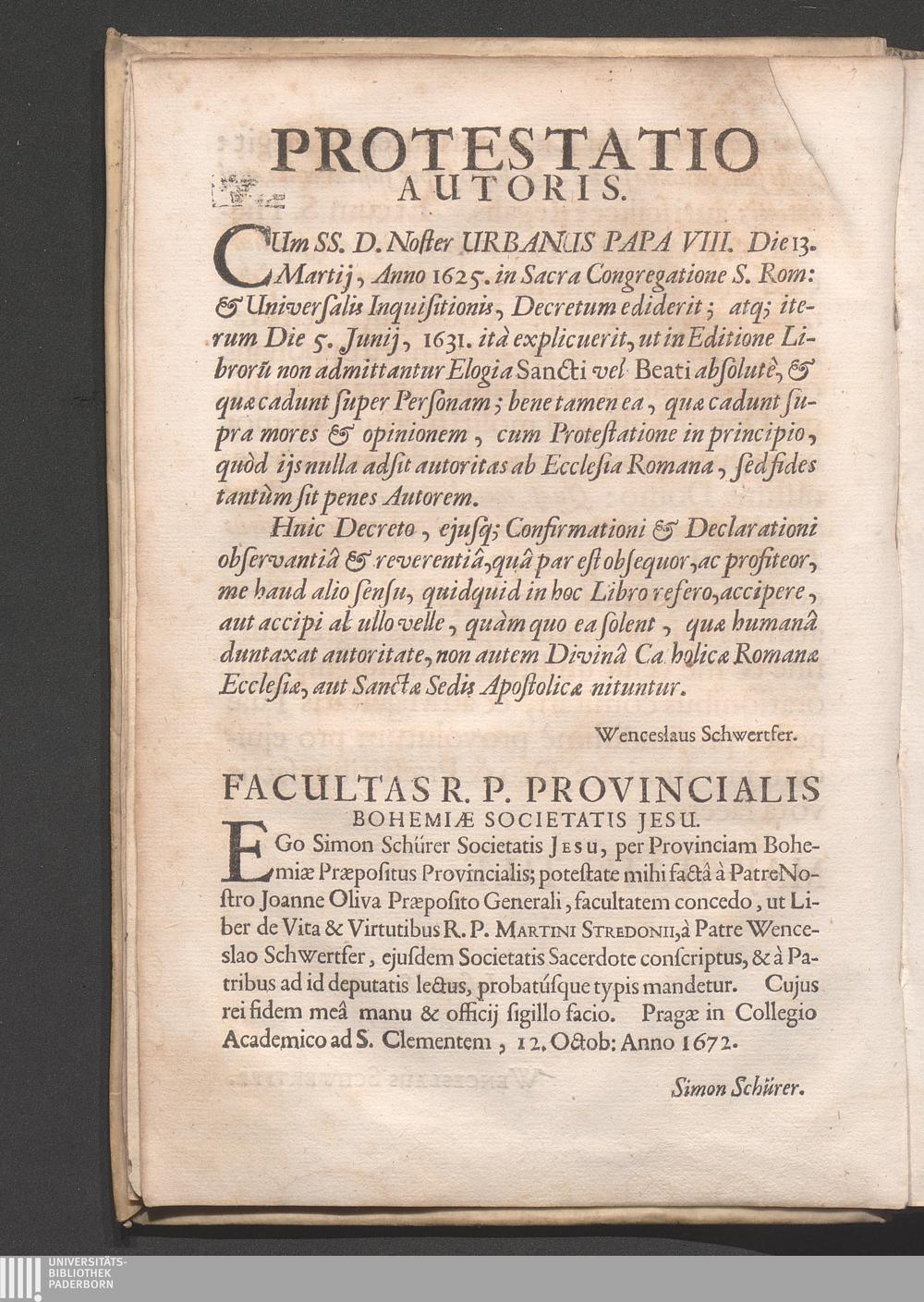 Facultas R. P. Provincialis Bohemiæ Societatis Jesu.