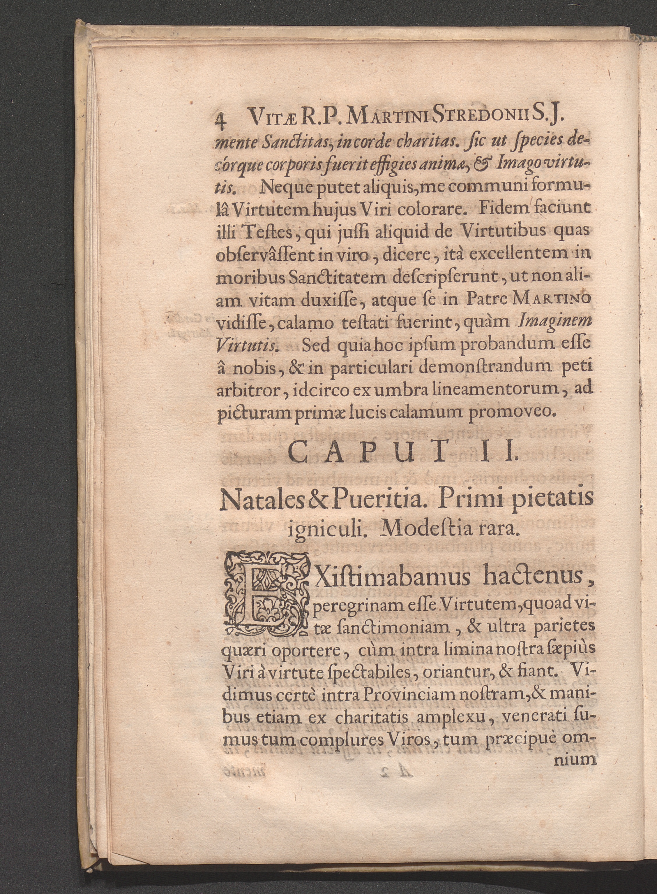 Caput II. Natales & Pueritia. Primi Pietatis igniculi. Modestia rara.