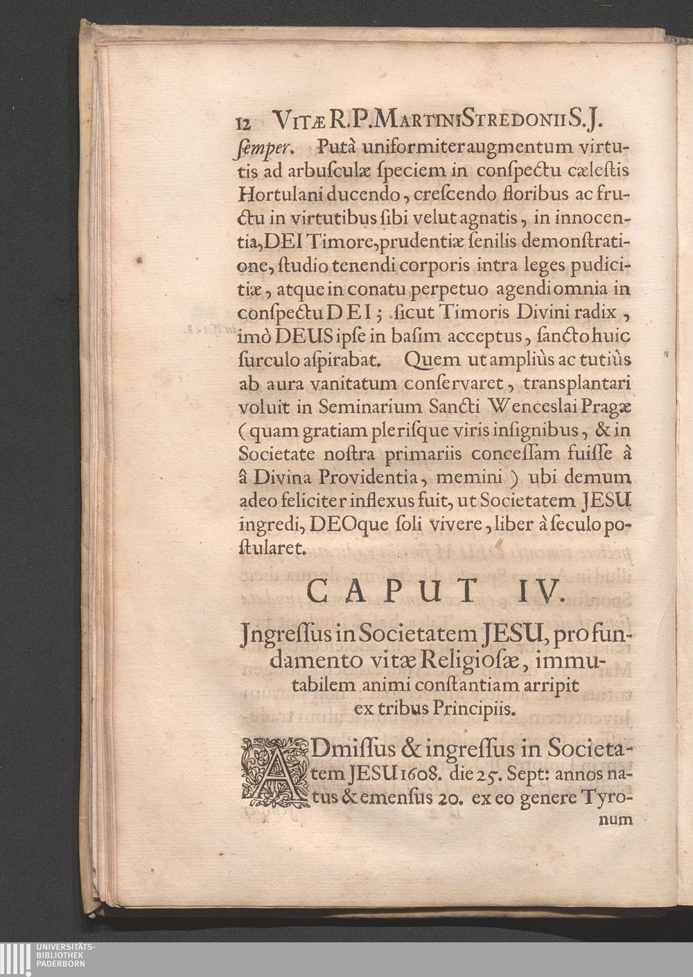 Caput IV. Ingressus in Societatem Jesu, pro fundamento Vitæ Religiosæ, immutabilem[...]