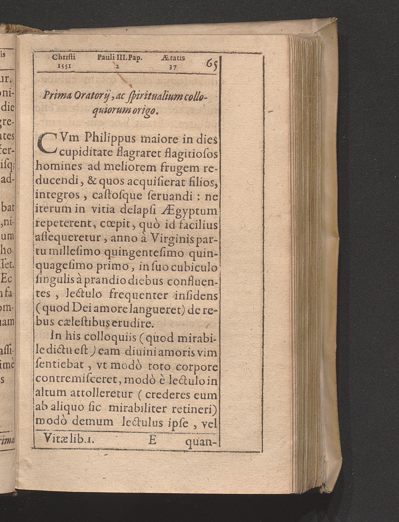 Vita Beati P. Philippi Nerii Florentini. Congregationis Oratorii Fvndatoris : Qvi Sanctimonia Et Miracvlis Nostro Seculo claruit, In Annos Digesta / Auctore Antonio Gallonio Romano Eivsdem Congregationis Presbytero