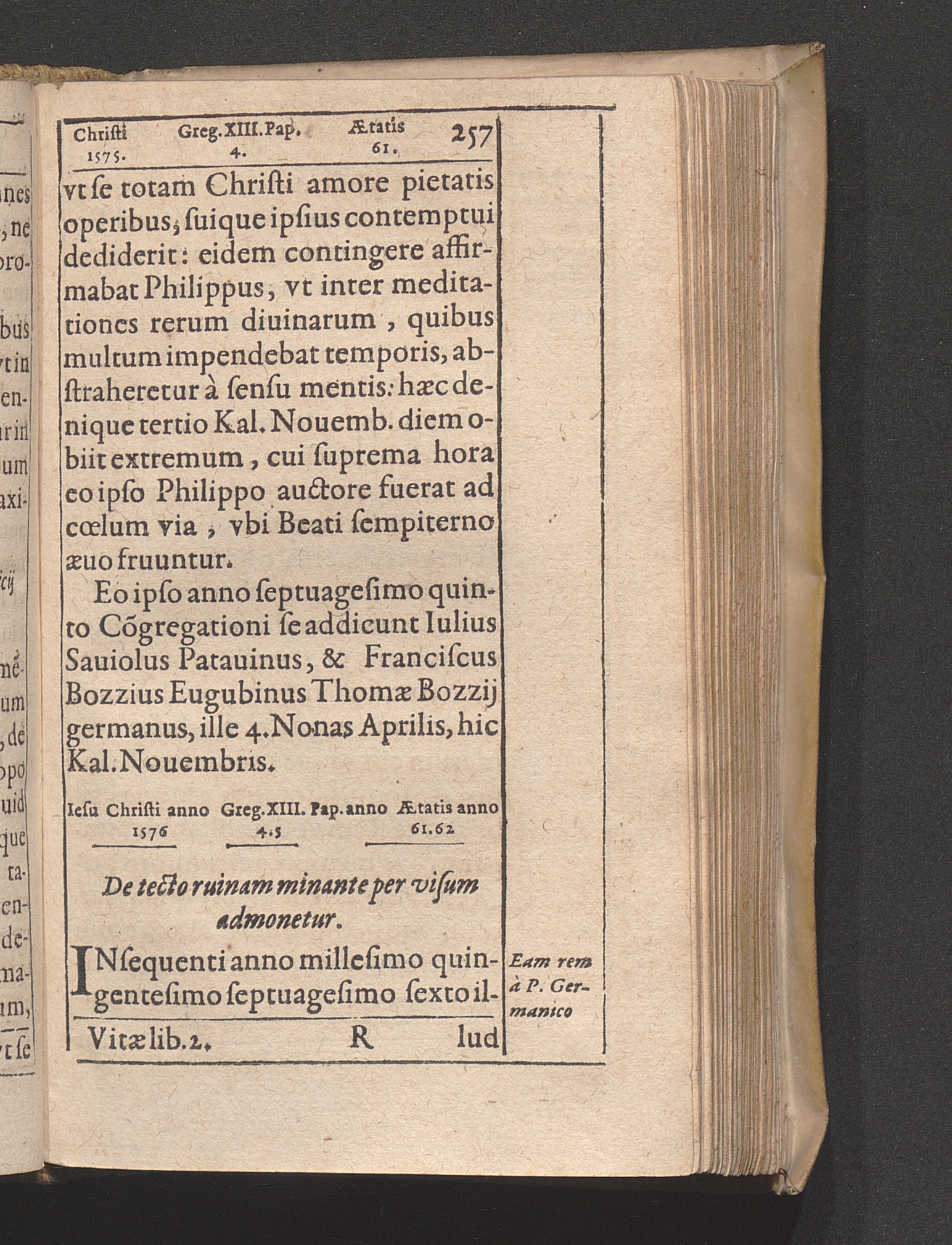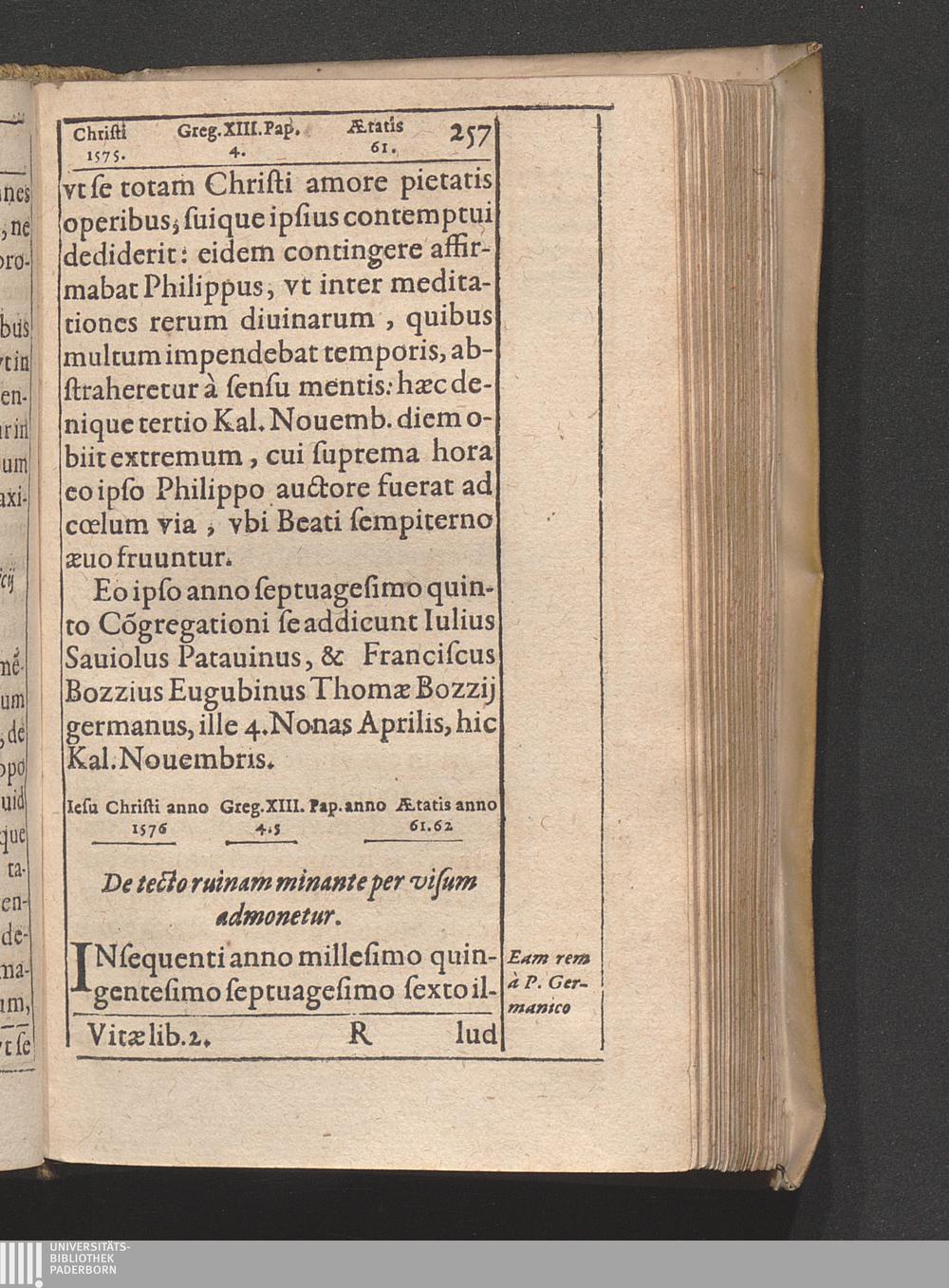Vita Beati P. Philippi Nerii Florentini. Congregationis Oratorii Fvndatoris : Qvi Sanctimonia Et Miracvlis Nostro Seculo claruit, In Annos Digesta / Auctore Antonio Gallonio Romano Eivsdem Congregationis Presbytero