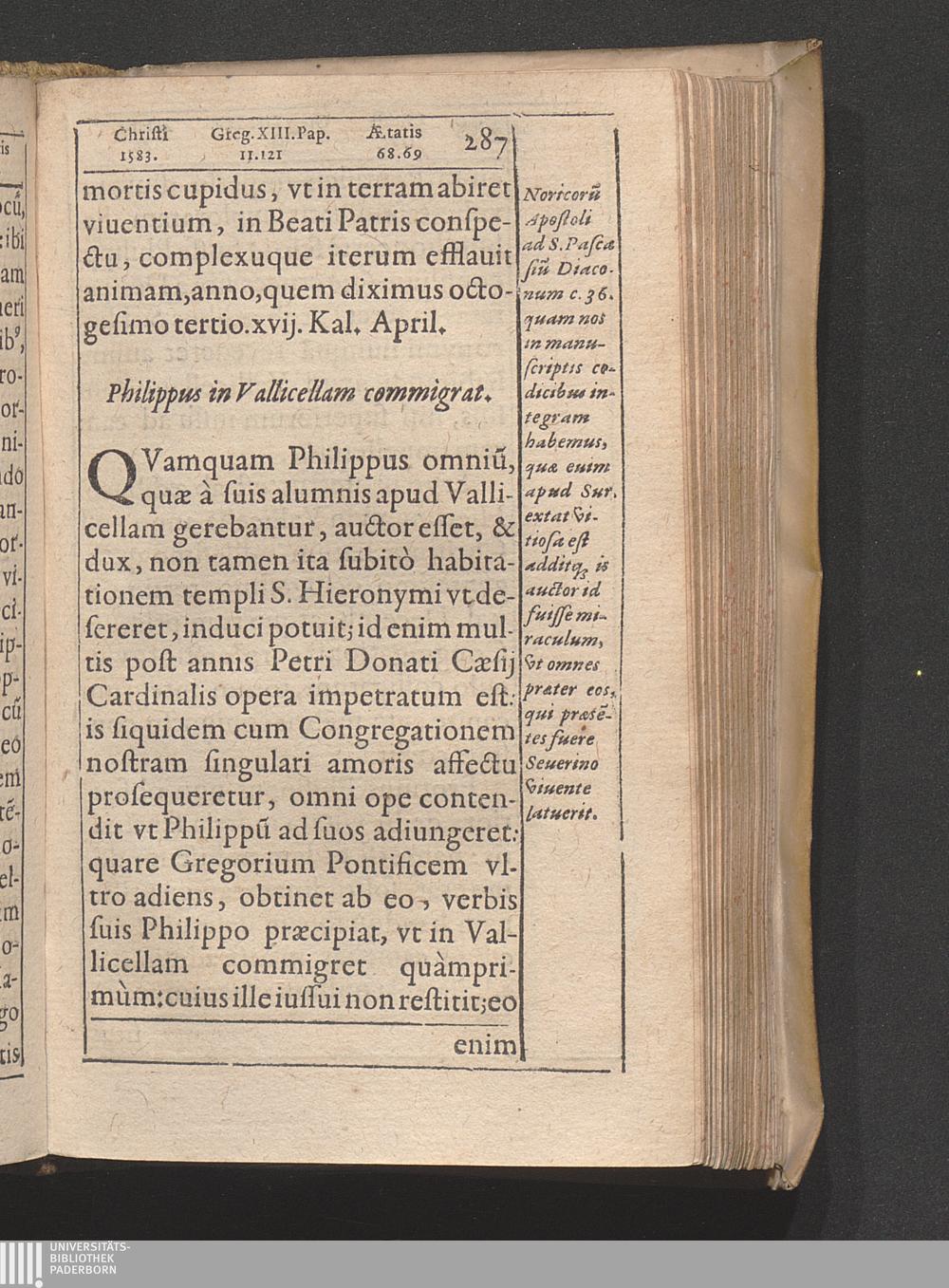 Vita Beati P. Philippi Nerii Florentini. Congregationis Oratorii Fvndatoris : Qvi Sanctimonia Et Miracvlis Nostro Seculo claruit, In Annos Digesta / Auctore Antonio Gallonio Romano Eivsdem Congregationis Presbytero