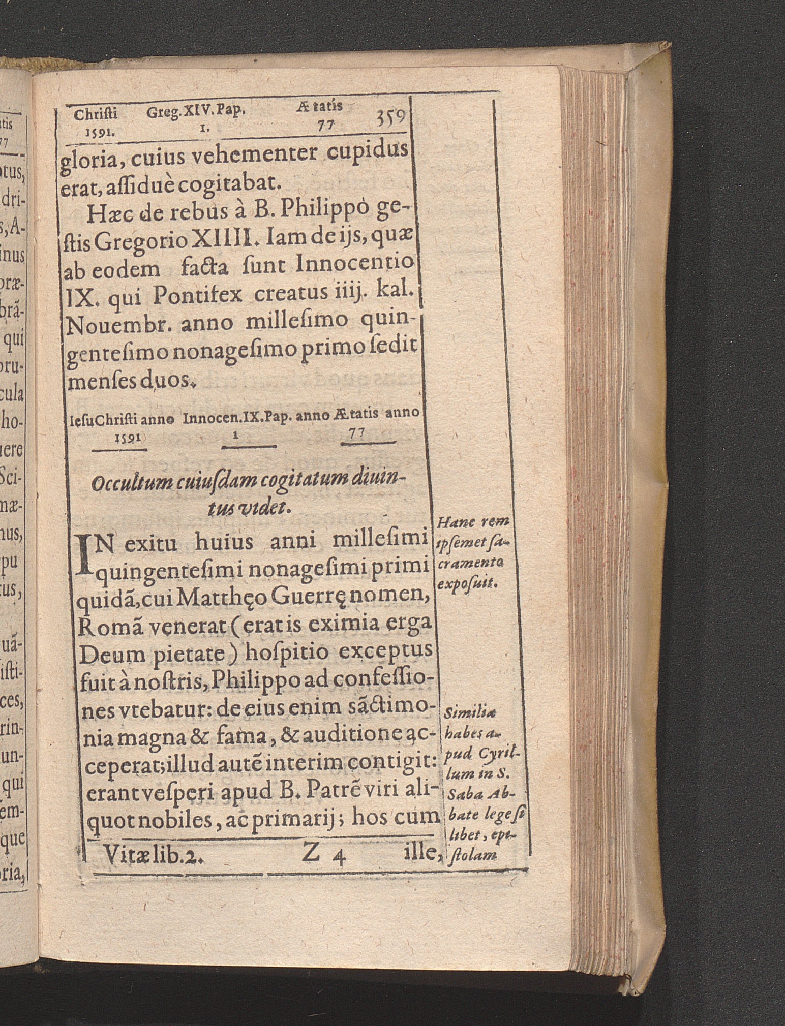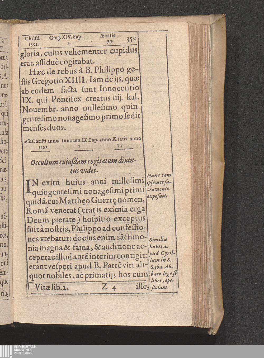 Vita Beati P. Philippi Nerii Florentini. Congregationis Oratorii Fvndatoris : Qvi Sanctimonia Et Miracvlis Nostro Seculo claruit, In Annos Digesta / Auctore Antonio Gallonio Romano Eivsdem Congregationis Presbytero