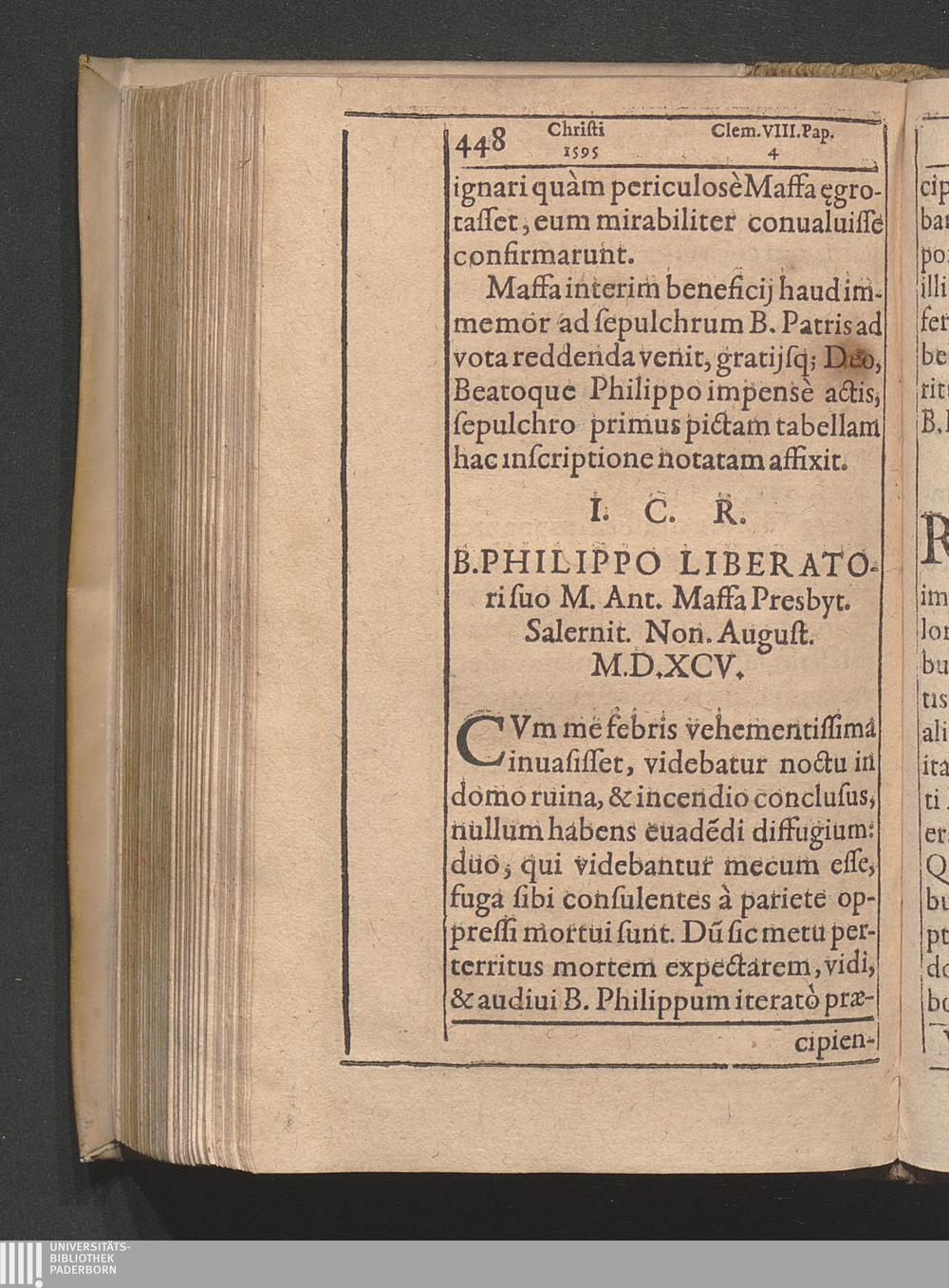 Vita Beati P. Philippi Nerii Florentini. Congregationis Oratorii Fvndatoris : Qvi Sanctimonia Et Miracvlis Nostro Seculo claruit, In Annos Digesta / Auctore Antonio Gallonio Romano Eivsdem Congregationis Presbytero