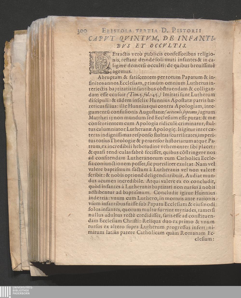Epistolae Tres Ad || D. Ioannem Pappvm || Theologvm Lvthe-||ranvm:|| Prima, Excitatoria, cùm in seruando iureiurando Emetingæ facto, ne-||gligentior esset Pappus.|| Secunda, Refutatoria Parallelorum Pappi ... || Tertia, quæ iam primùm in lucem refertur, & tanquam integer liber || est, Demonstratoria, nullum omnium mortalium ... || sensisse de fide Christi vt sensit Lutherus & credidisse || vt ille credidit.|| / Avthore || ... D. Ioanne Pistorio Nidano, SS. Theolo-||giae Doctore, Protonotario Apostolico, Ca-||nonico Constantiensi, Sereniss. Avstriæ || Et Bavariæ PPP. Con-||siliario.||