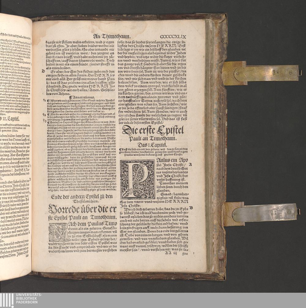 Biblia/ beider|| Allt vnnd Newen Testa||menten/ : fleissig/ treülich vn[d] Christ||lich/ nach alter/ inn Christlicher|| kirchen gehabter Translation/ mit auß=||legunng etlicher dunckeler ort/ vnnd besse=||rung viler verrückter wort vnd sprüch/|| so biß anhere inn andernn kurtz auß=||gangnen theutschen Bibeln ge=||spürt vnd gesehen|| / Durch D. Johan Dieten||berger/ new verdeutscht ...||