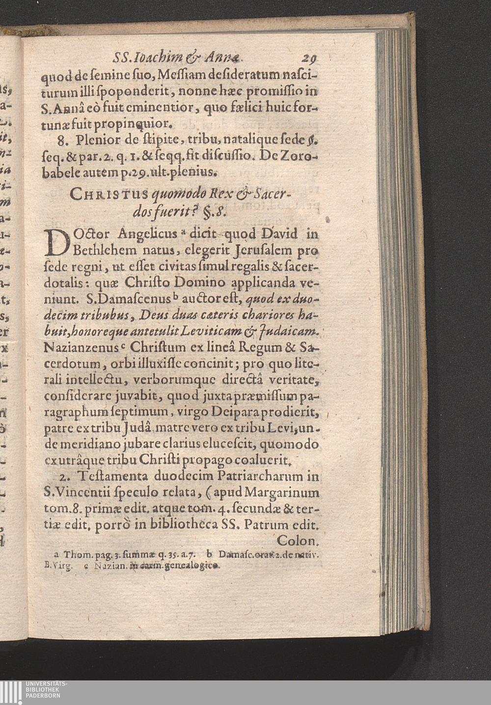 Historia Sanctorum Joachim Et Annæ Geneseos, Vitæ, Transitus Et Connexorvm : Nec non Qvæstiones Pro Tuenda Veritate Asceticæ : Partes Duæ / Auctore R. P. F. Jacobo Polio Ordinis Minorum Recollectorum Provinciæ Coloniæ Chronologo