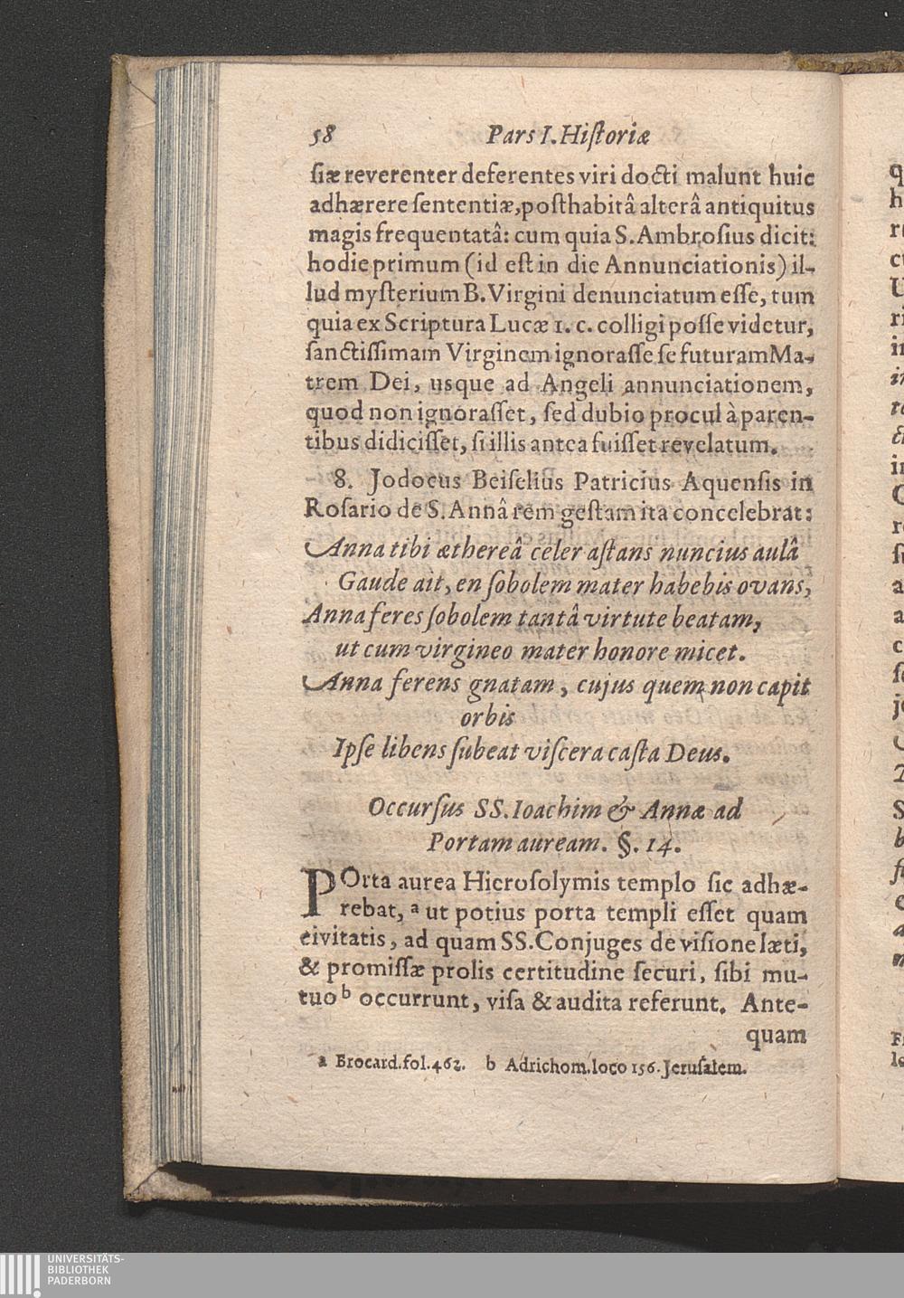 Historia Sanctorum Joachim Et Annæ Geneseos, Vitæ, Transitus Et Connexorvm : Nec non Qvæstiones Pro Tuenda Veritate Asceticæ : Partes Duæ / Auctore R. P. F. Jacobo Polio Ordinis Minorum Recollectorum Provinciæ Coloniæ Chronologo