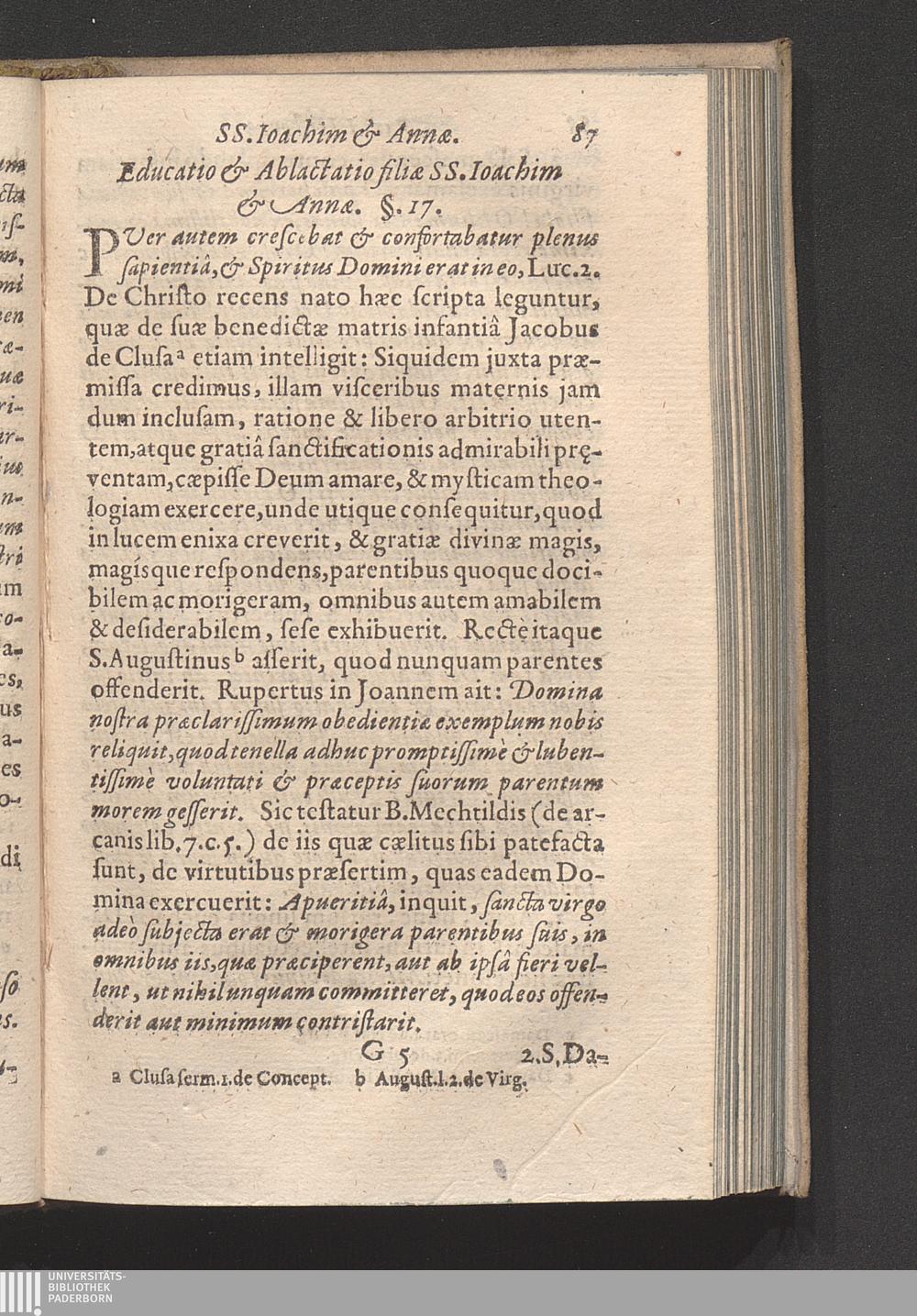 Historia Sanctorum Joachim Et Annæ Geneseos, Vitæ, Transitus Et Connexorvm : Nec non Qvæstiones Pro Tuenda Veritate Asceticæ : Partes Duæ / Auctore R. P. F. Jacobo Polio Ordinis Minorum Recollectorum Provinciæ Coloniæ Chronologo
