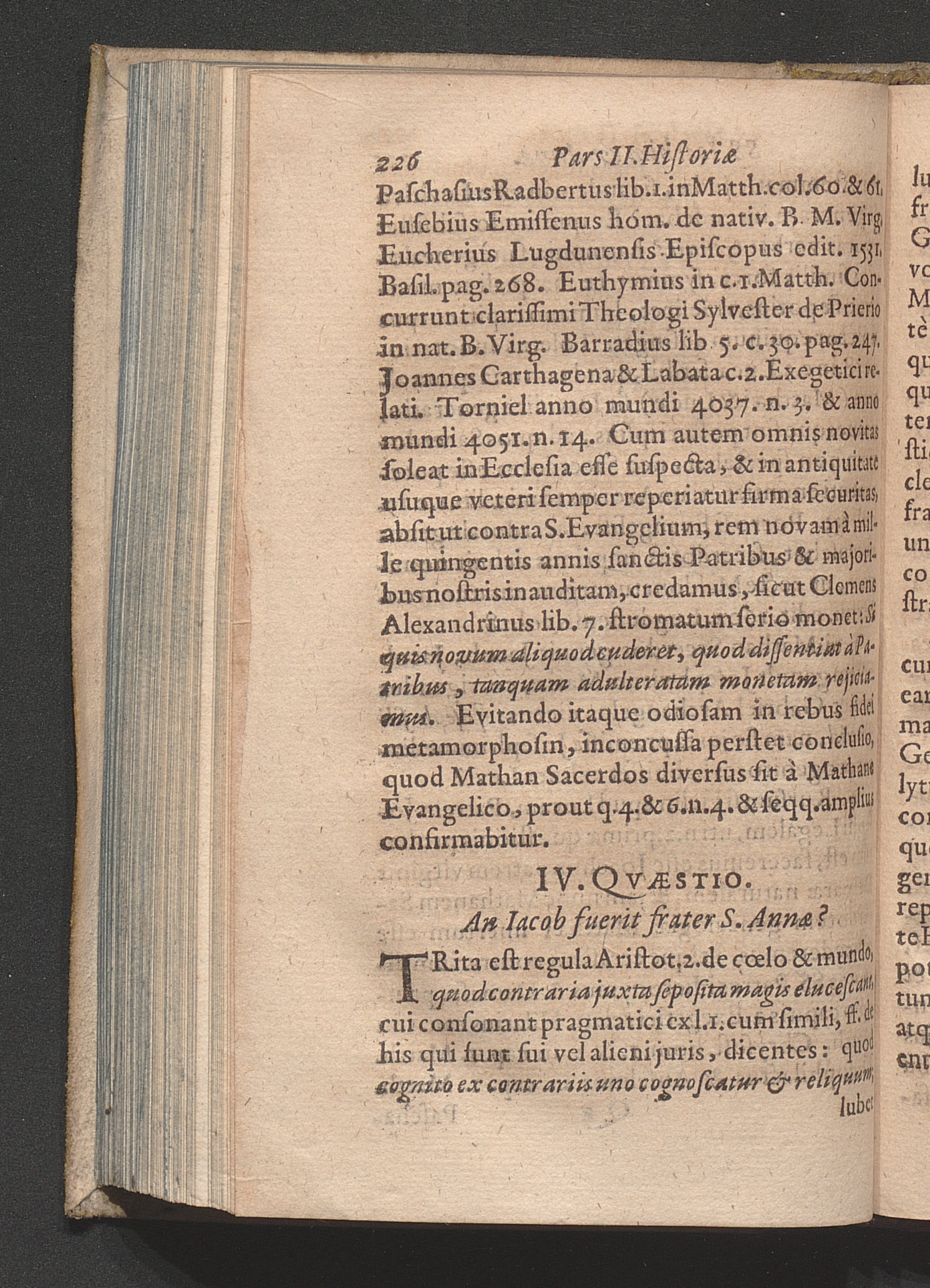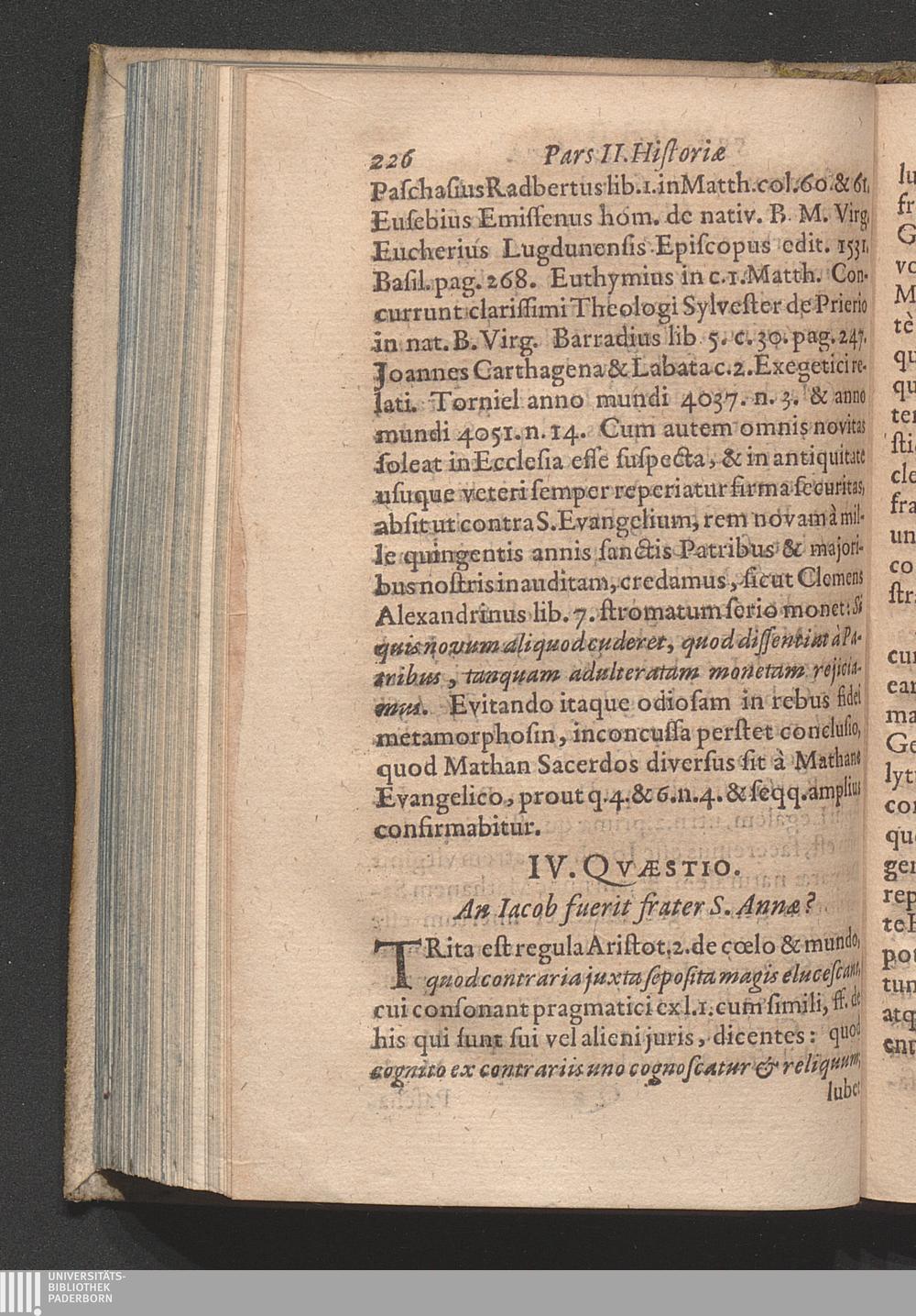 Historia Sanctorum Joachim Et Annæ Geneseos, Vitæ, Transitus Et Connexorvm : Nec non Qvæstiones Pro Tuenda Veritate Asceticæ : Partes Duæ / Auctore R. P. F. Jacobo Polio Ordinis Minorum Recollectorum Provinciæ Coloniæ Chronologo