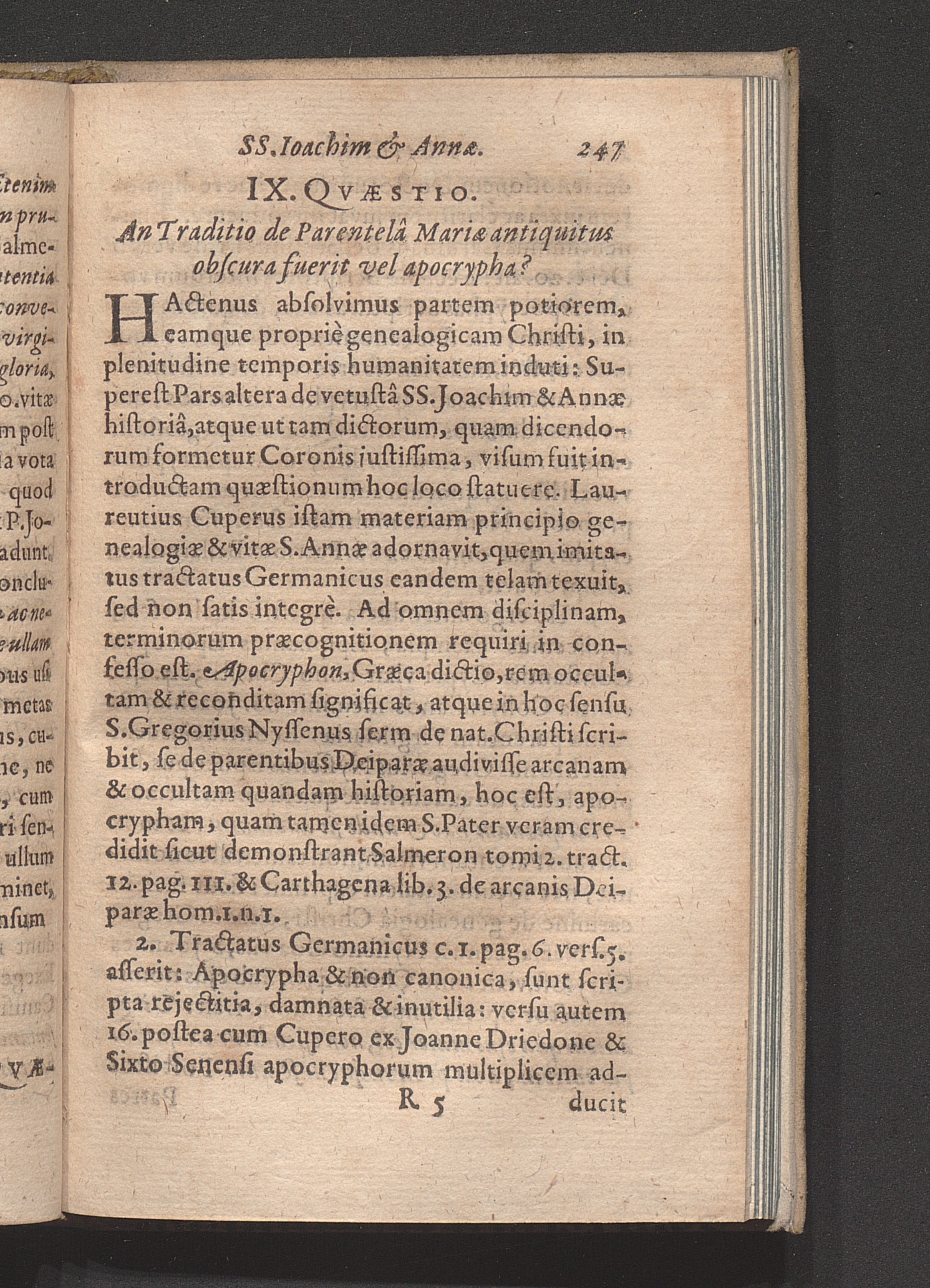 Historia Sanctorum Joachim Et Annæ Geneseos, Vitæ, Transitus Et Connexorvm : Nec non Qvæstiones Pro Tuenda Veritate Asceticæ : Partes Duæ / Auctore R. P. F. Jacobo Polio Ordinis Minorum Recollectorum Provinciæ Coloniæ Chronologo