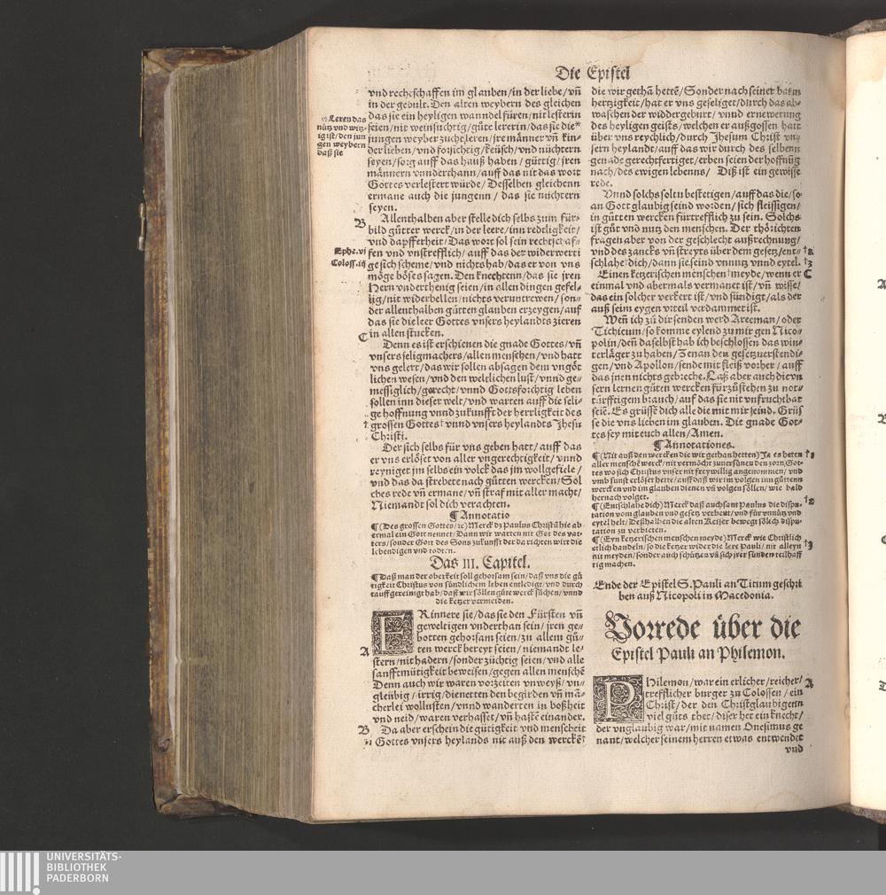 Biblia/ beider|| Allt vnnd Newen Testa||menten/ : fleissig/ treülich vn[d] Christ||lich/ nach alter/ inn Christlicher|| kirchen gehabter Translation/ mit auß=||legunng etlicher dunckeler ort/ vnnd besse=||rung viler verrückter wort vnd sprüch/|| so biß anhere inn andernn kurtz auß=||gangnen theutschen Bibeln ge=||spürt vnd gesehen|| / Durch D. Johan Dieten||berger/ new verdeutscht ...||