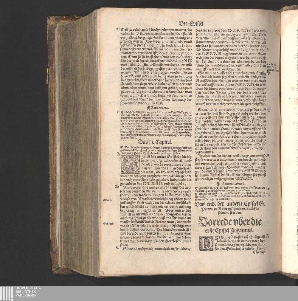 Biblia/ beider|| Allt vnnd Newen Testa||menten/ : fleissig/ treülich vn[d] Christ||lich/ nach alter/ inn Christlicher|| kirchen gehabter Translation/ mit auß=||legunng etlicher dunckeler ort/ vnnd besse=||rung viler verrückter wort vnd sprüch/|| so biß anhere inn andernn kurtz auß=||gangnen theutschen Bibeln ge=||spürt vnd gesehen|| / Durch D. Johan Dieten||berger/ new verdeutscht ...||