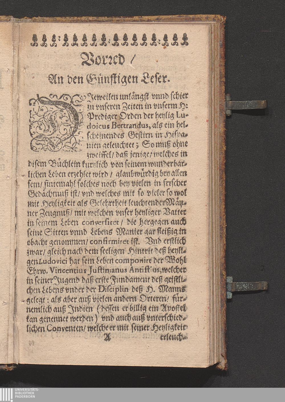 Kurtzer Jnhalt Deß wunderbahrlichen Lebenß deß H. Lvdovici Bertrandi PredigerOrdenß der Occidentalischen Jndianeren Apostels : Welchen Jhro Päbstliche Heyligkeit/ Clemens der X. in diesem 1671. Jahrs den 12. Aprilis mit öffentlicher Canonization in die Zahl der Heyligen gesetzet / [Ambrosius Randing]