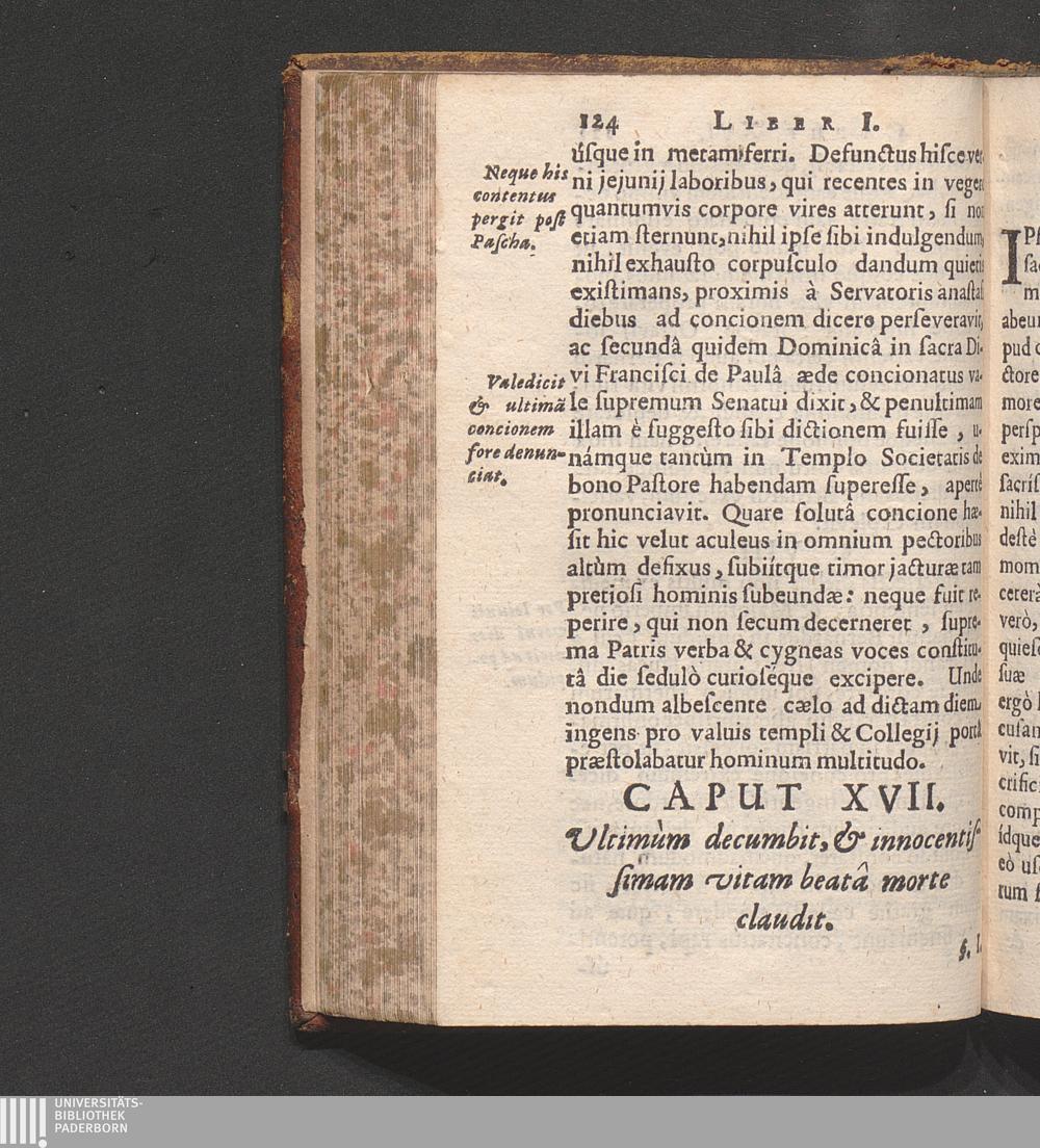 Cap. XVII Vltimûm decumbit , & innocentissimam vitam beata morte claudit.