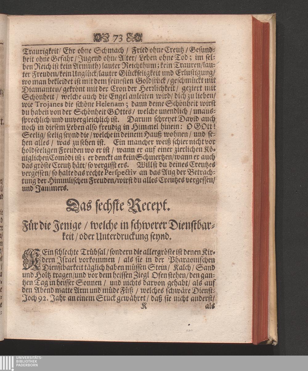 Das 6. Recept. Für die Jenige / welche in schwerer Dienstbarkeit / oder Unterdruckung[...]